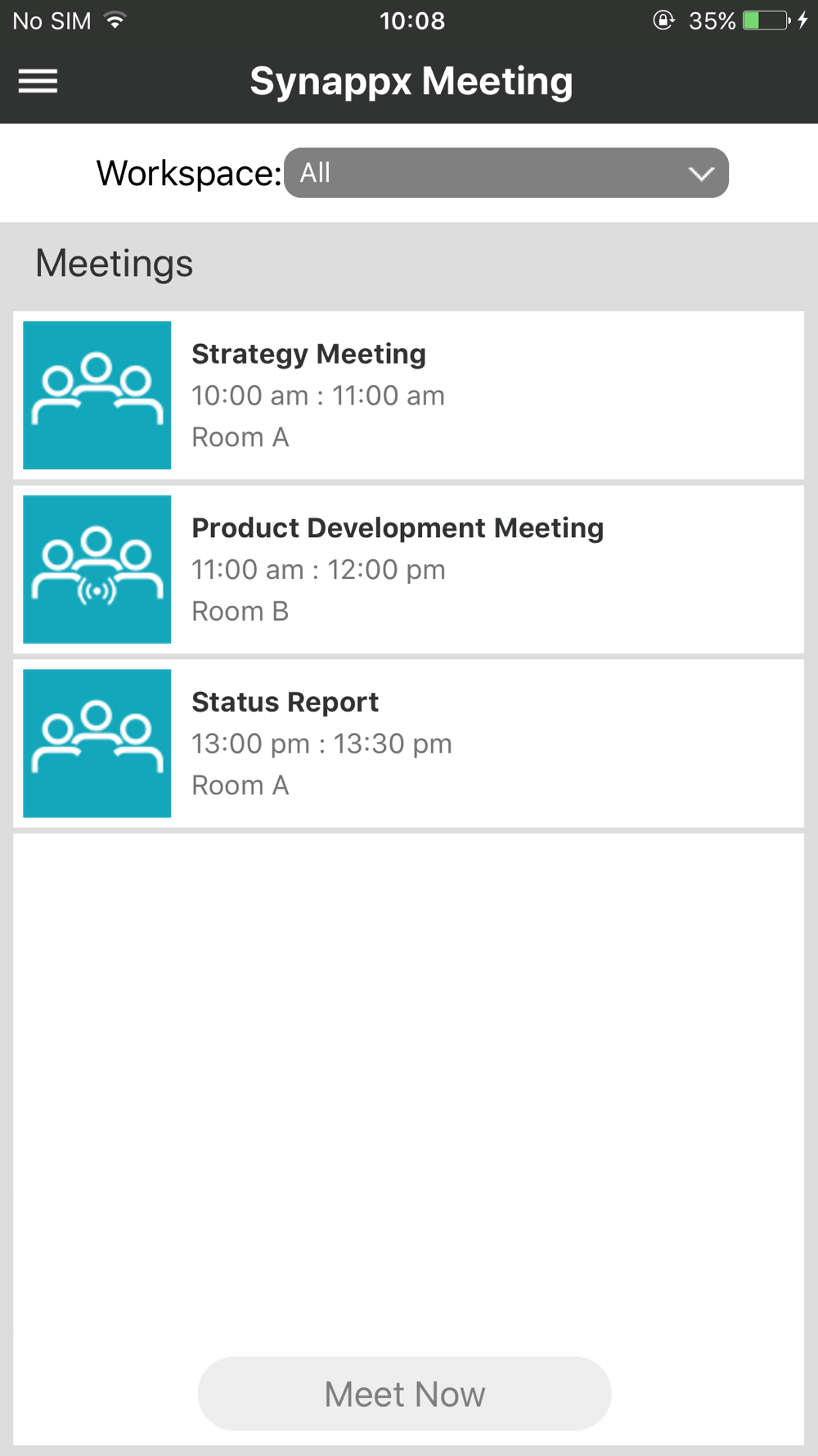- Synappx Meeting can automatically update the calendar and free up the meeting room if the meeting should end early.