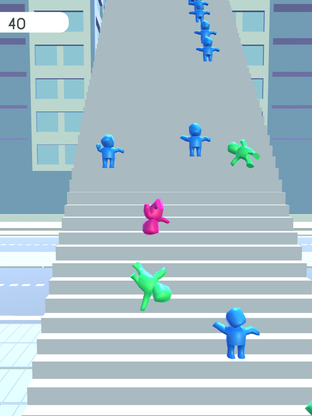 Push and roll past the crowds and get to the bottom of the stairs!