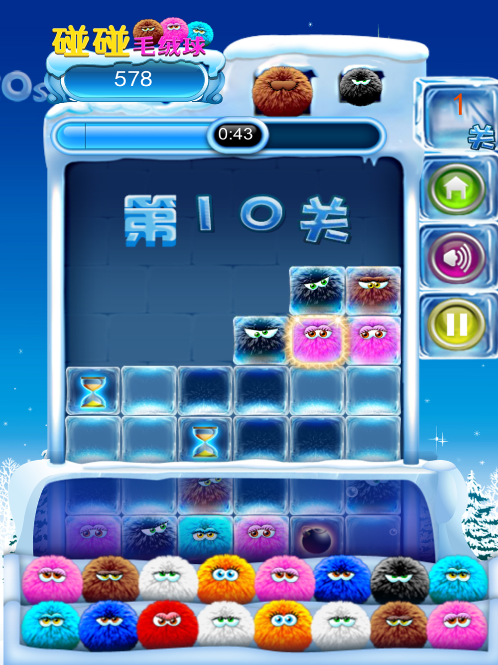 把同一种毛绒球放在一起,就会消除,玩的过程中,还会出现炸弹来帮你一起消灭毛绒球。操作简单,画面清晰,好玩有趣,不过有时间限定哦,还等什么呢,赶快来闯关吧!