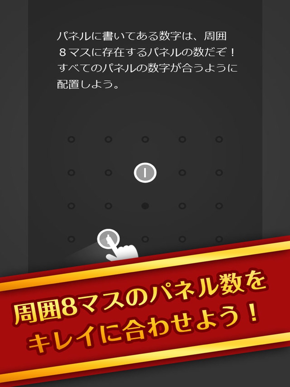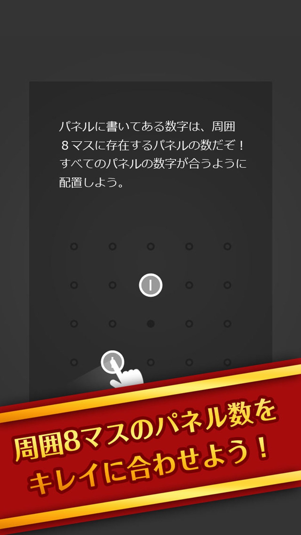 パネルに書いてある数字は、周囲8マスに存在する他のパネルの数だぞ!