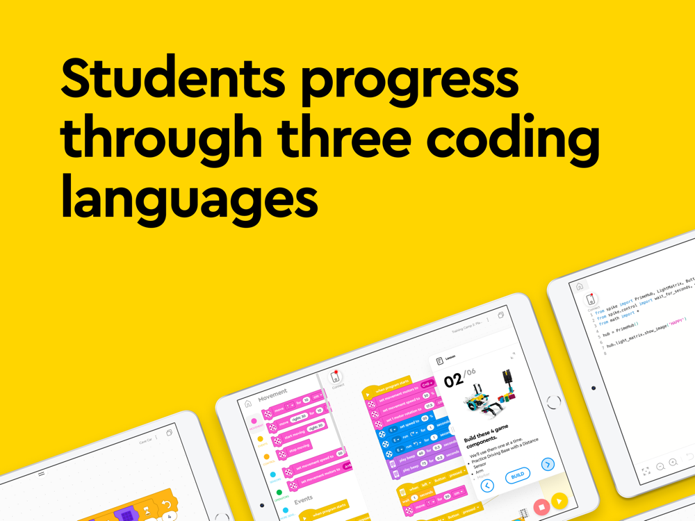 The SPIKE App provides multiple intuitive coding environments which, when combined with SPIKE Prime or SPIKE Essential, offer a naturally adaptive, physical, and digitally creative system that teachers and students alike love to use. Students first progress from using simple icon-blocks to word-block coding based on Scratch, and finally Python to code their creations and bring STEAM learning to life. The SPIKE App delivers exciting and playful learning experiences for students of all abilities.