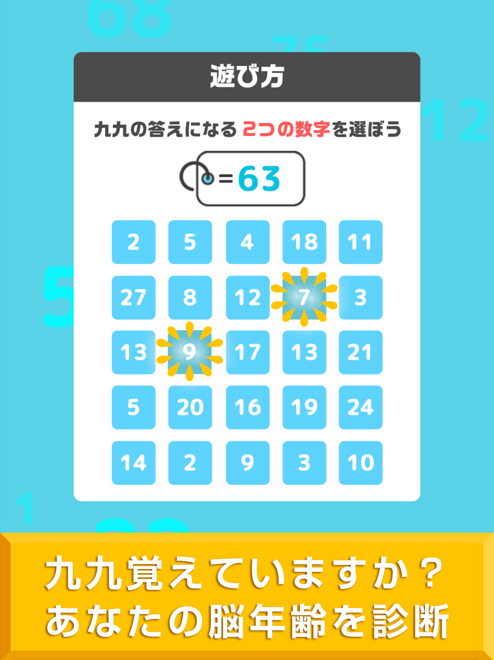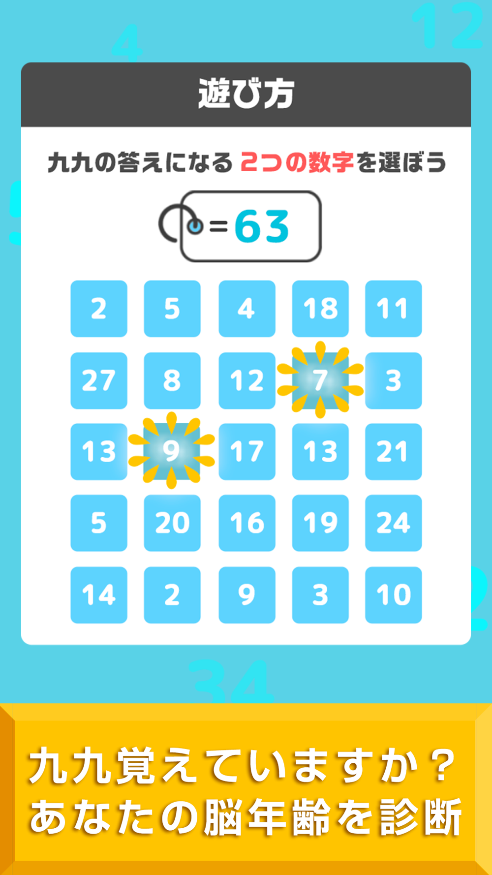 シンプルな計算ゲームで脳年齢を診断します!