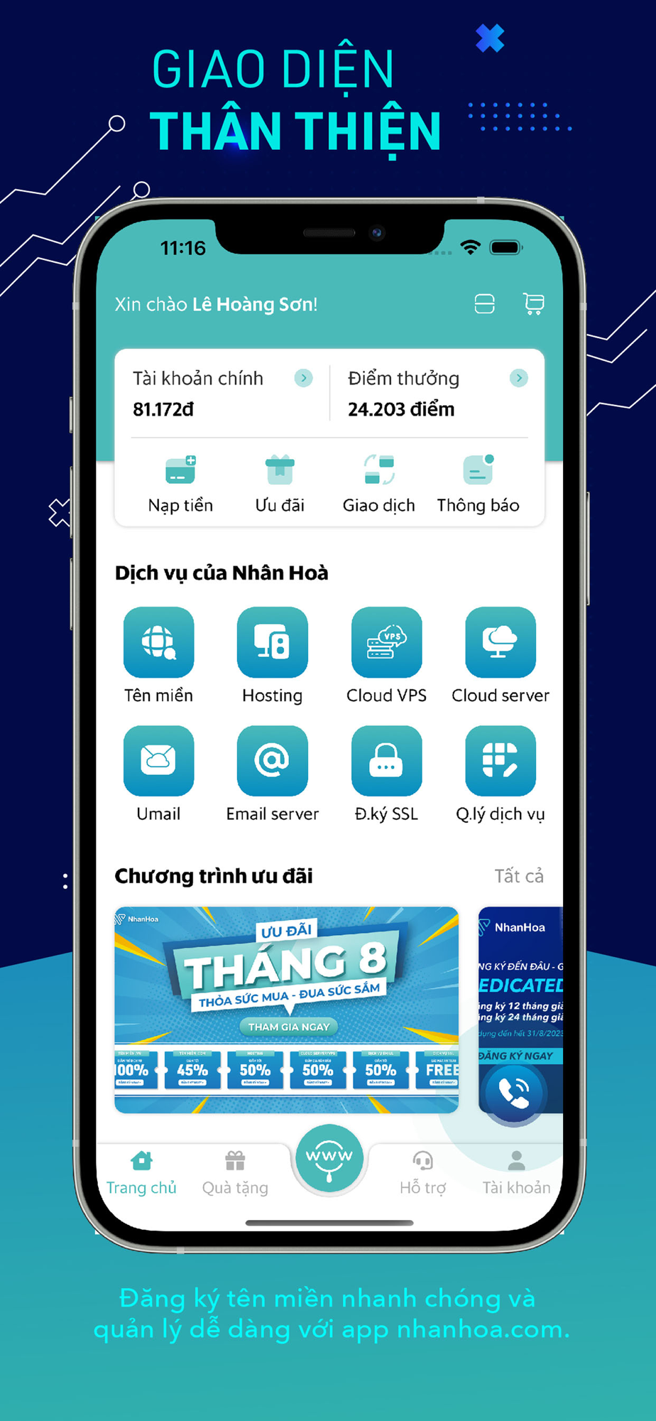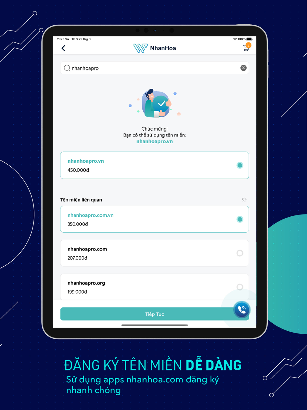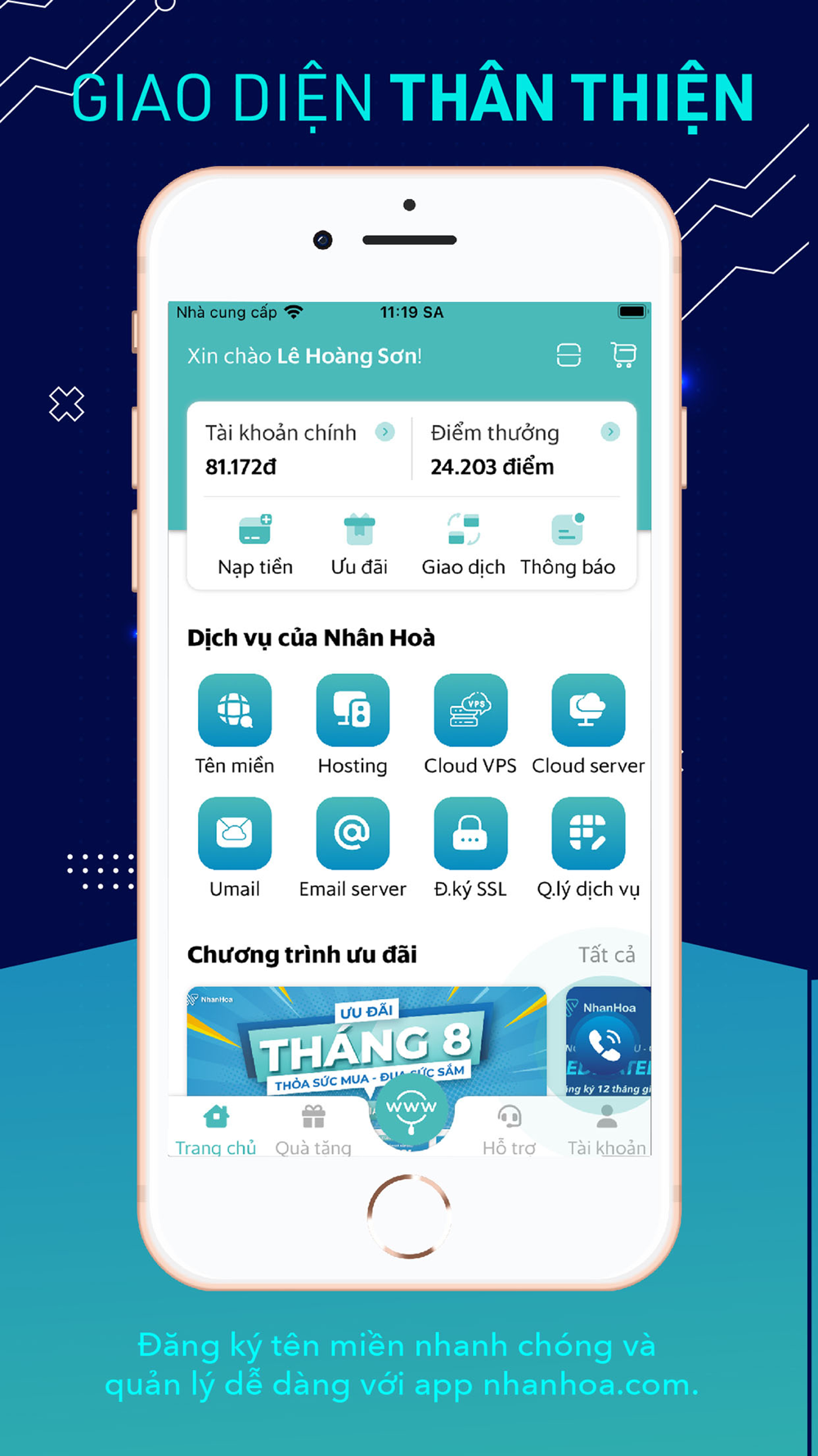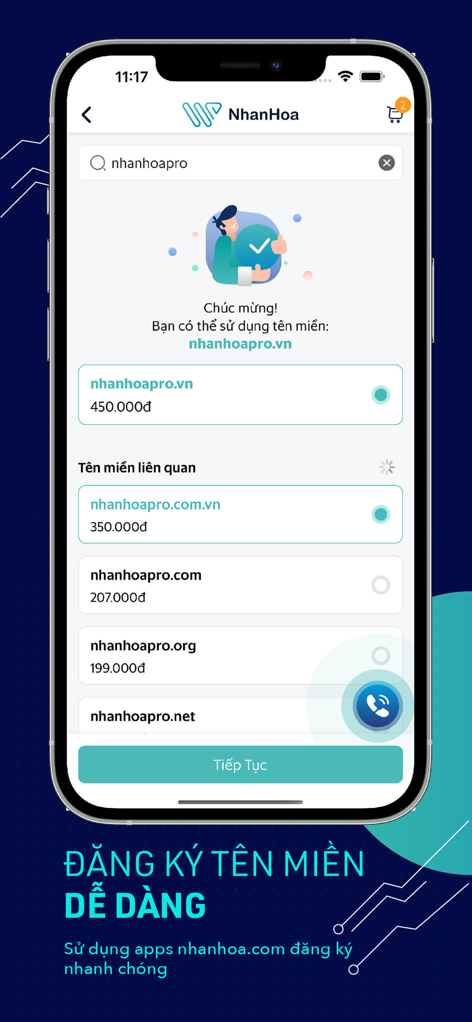 - Ứng dụng Nhân Hoà phát hành miễn phí dùng cho dịch vụ tên miền của doanh nghiệp.