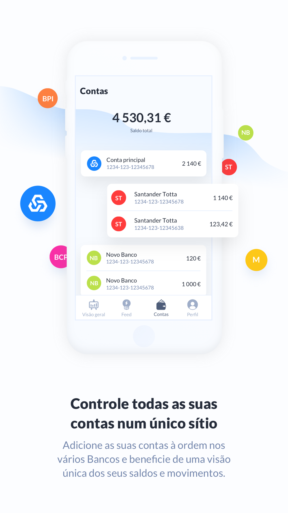 - disponibilizando uma visão de todas as suas contas à ordem de qualquer Banco, créditos (para já apenas Cofidis e Unicre) e cartões refeição (Caixa Break, Euroticket e Sodexo)