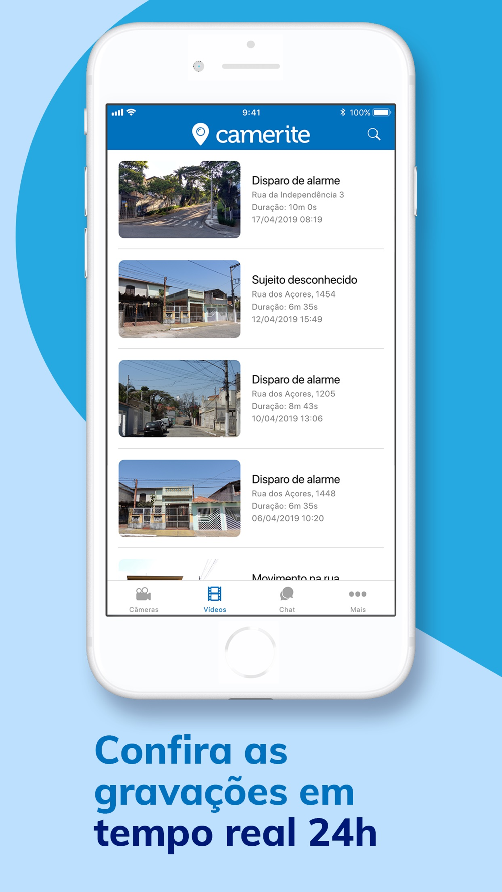 Acesse às câmeras em sua rua através do app Camerite de qualquer lugar, a qualquer hora, e cuide da segurança de sua região junto com seus vizinhos através do Monitoramento Colaborativo!