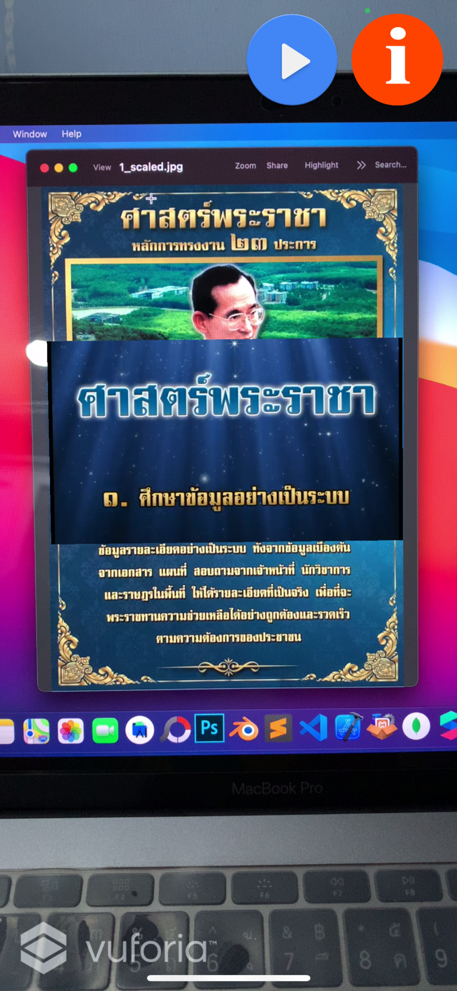 แอปพลิเคชั่น AR ของเราออกแบบมาเพื่อใช้ในการสื่อสารข้อมูล และนำเสนอชิ้นงานที่ผลิตขึ้นมา เพื่อการศึกษาเรียนรู้ หลักคำสอนในการทรงงานของ พระบาทสมเด็จพระปรมินทรมหาภูมิพลอดุลยเดชฯ