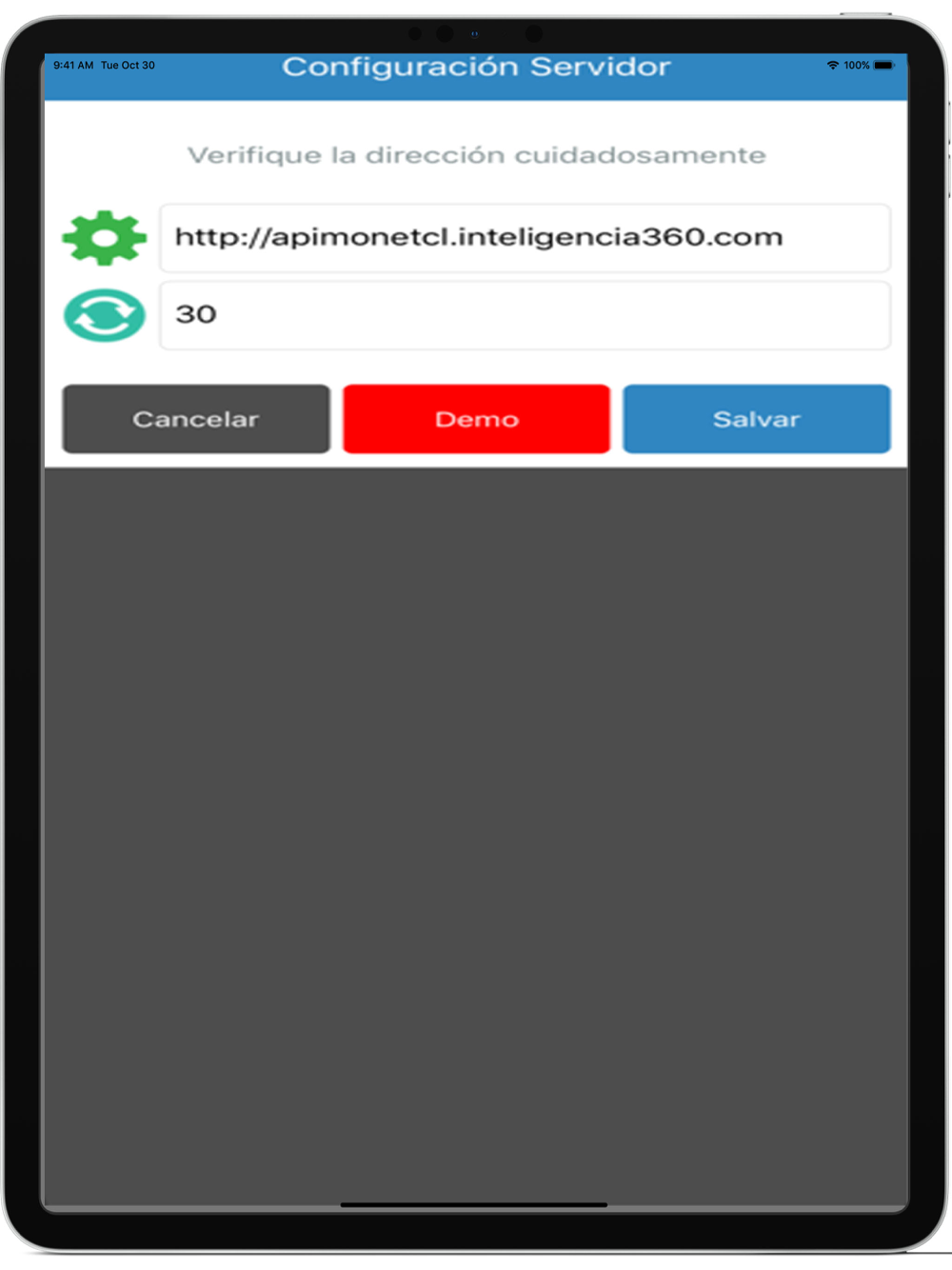 1. Ir a la configuración en la ventana de login y pulsar el botón demo.