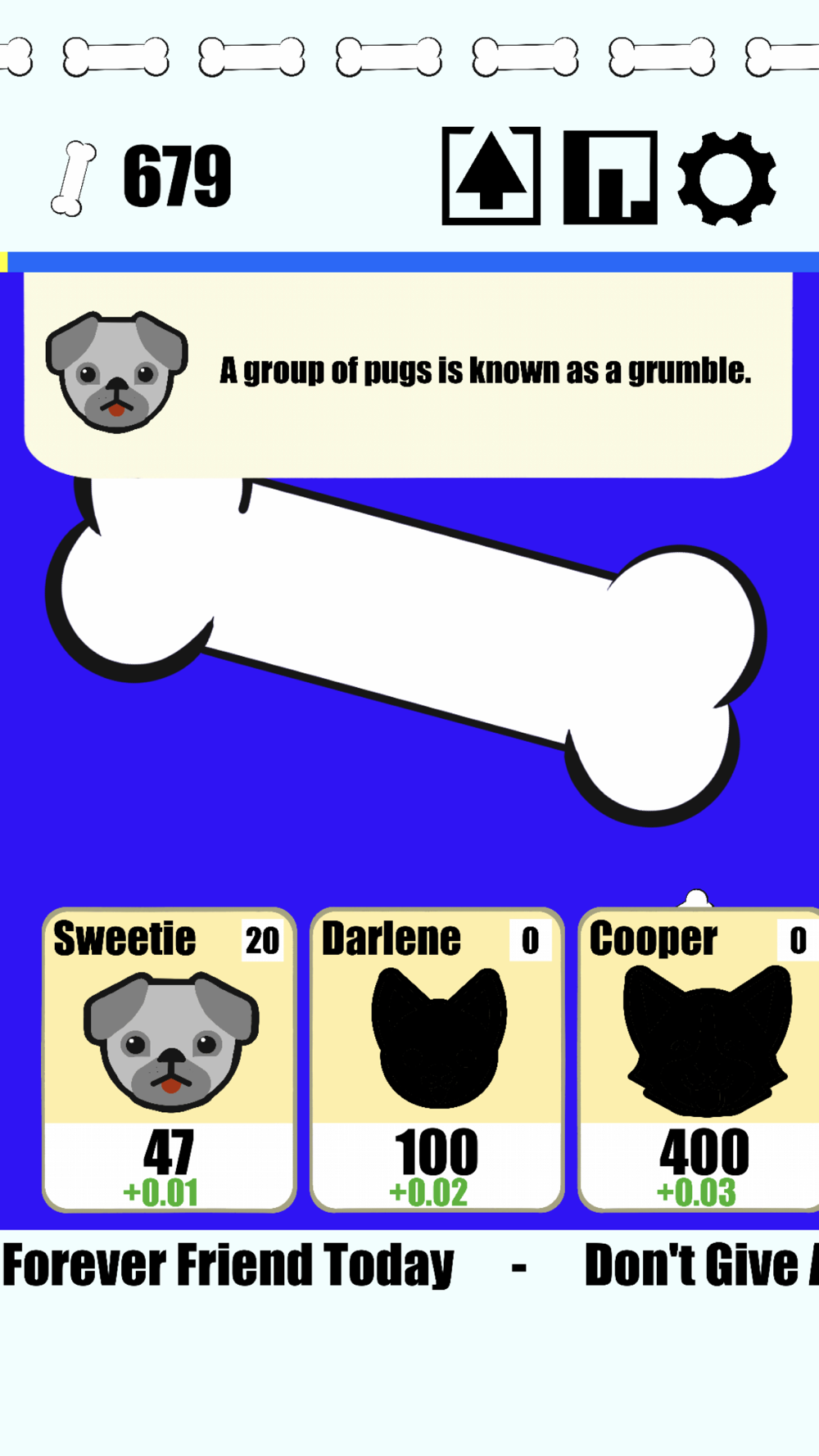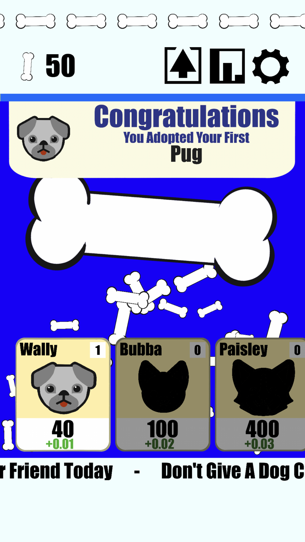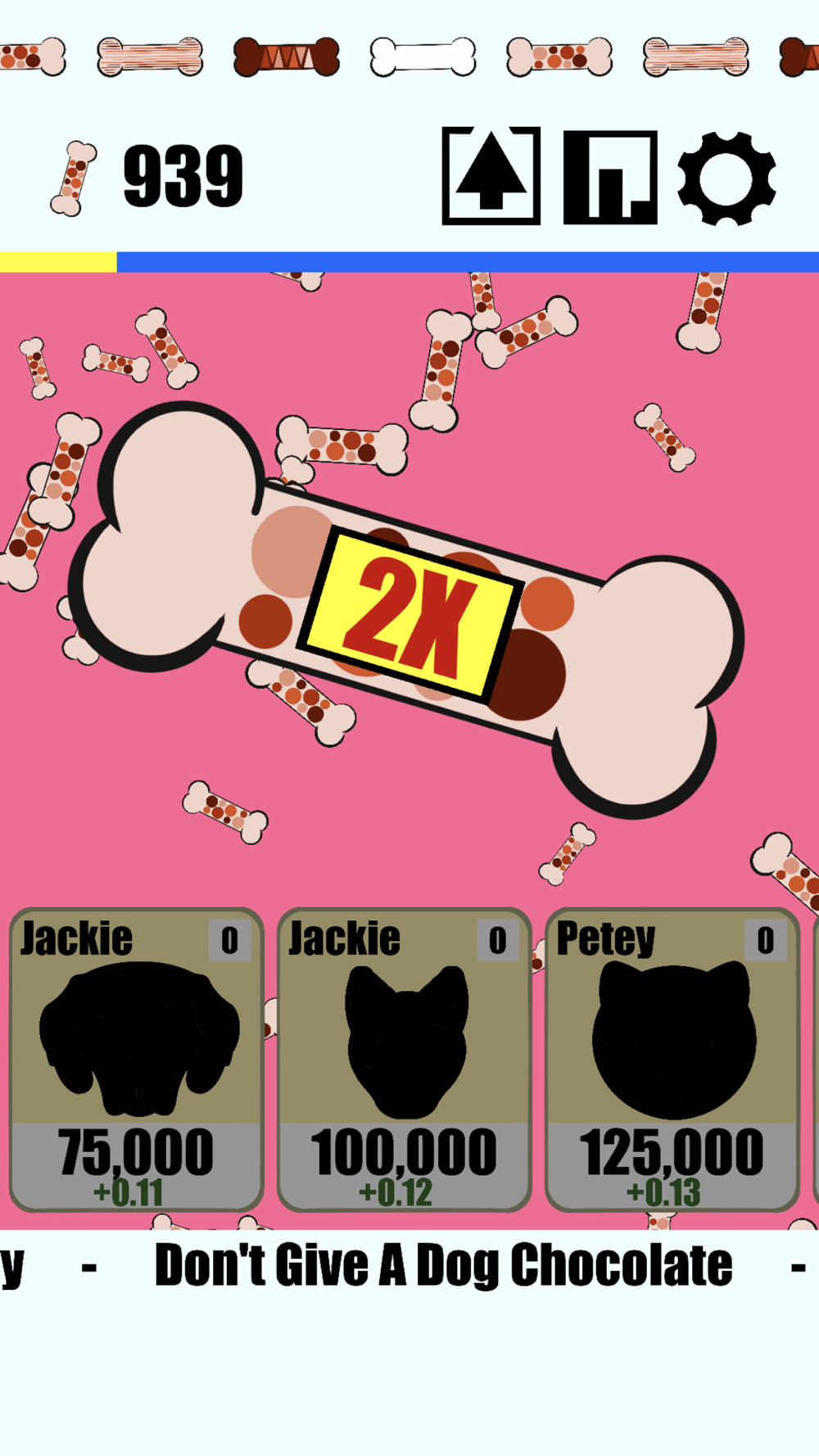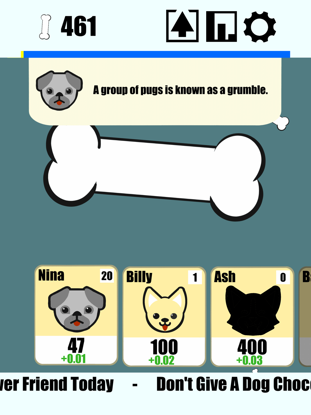 - Dog Clicker is an incremental game. The point of the game is to earn treats, by clicking on a giant bone in the center of the screen, until you have enough treats to adopt a dog.