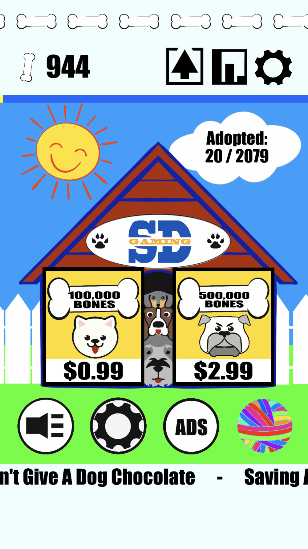 - There are 21 unique dogs to adopt at varying prices. Each dog can be purchased 99 times. Unlike most clicker games, this game can be completed by adopting all 2079 dogs!