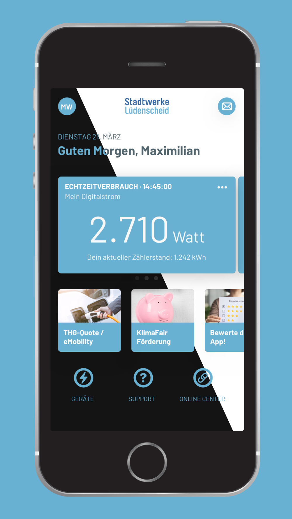 Mit der Digital Strom App der Stadtwerke Lüdenscheid siehst du, wieviel Strom du wirklich verbrauchst: jederzeit, überall und leicht verständlich. Keine komplizierten Jahresabrechnungen und keine überraschenden Nachzahlungen mehr.