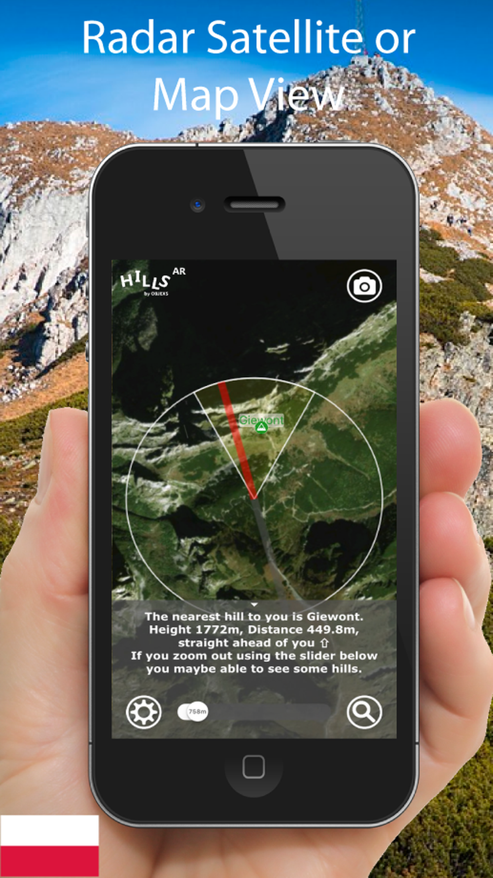 Poland Polska Hills AR is an Augmented Reality Viewer for finding hills around you on you cameras screen.