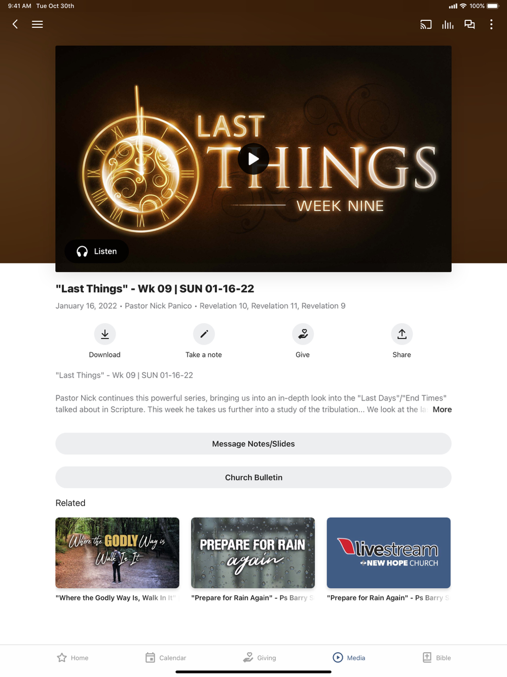 - Watch or listen to past messages