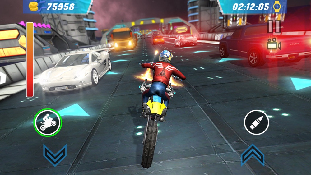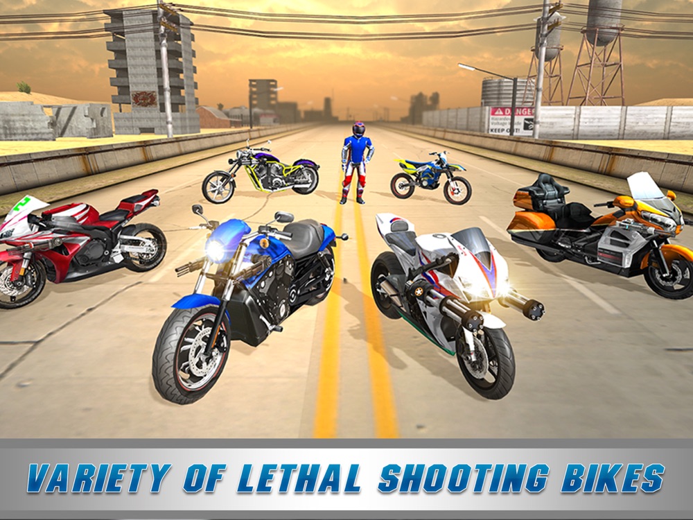 射击自行车赛车模拟器是一个免费的速度自行车赛车有很多具有挑战性的任务与多个令人惊叹的环境(城市,高速公路,工业和科幻等),以击落交通。 获得升级的摩托车,修复您选择的破坏性武器,并在繁忙的高速公路上开始大量的交通射击。 查看以下功能! 玩真正的自行车比赛。