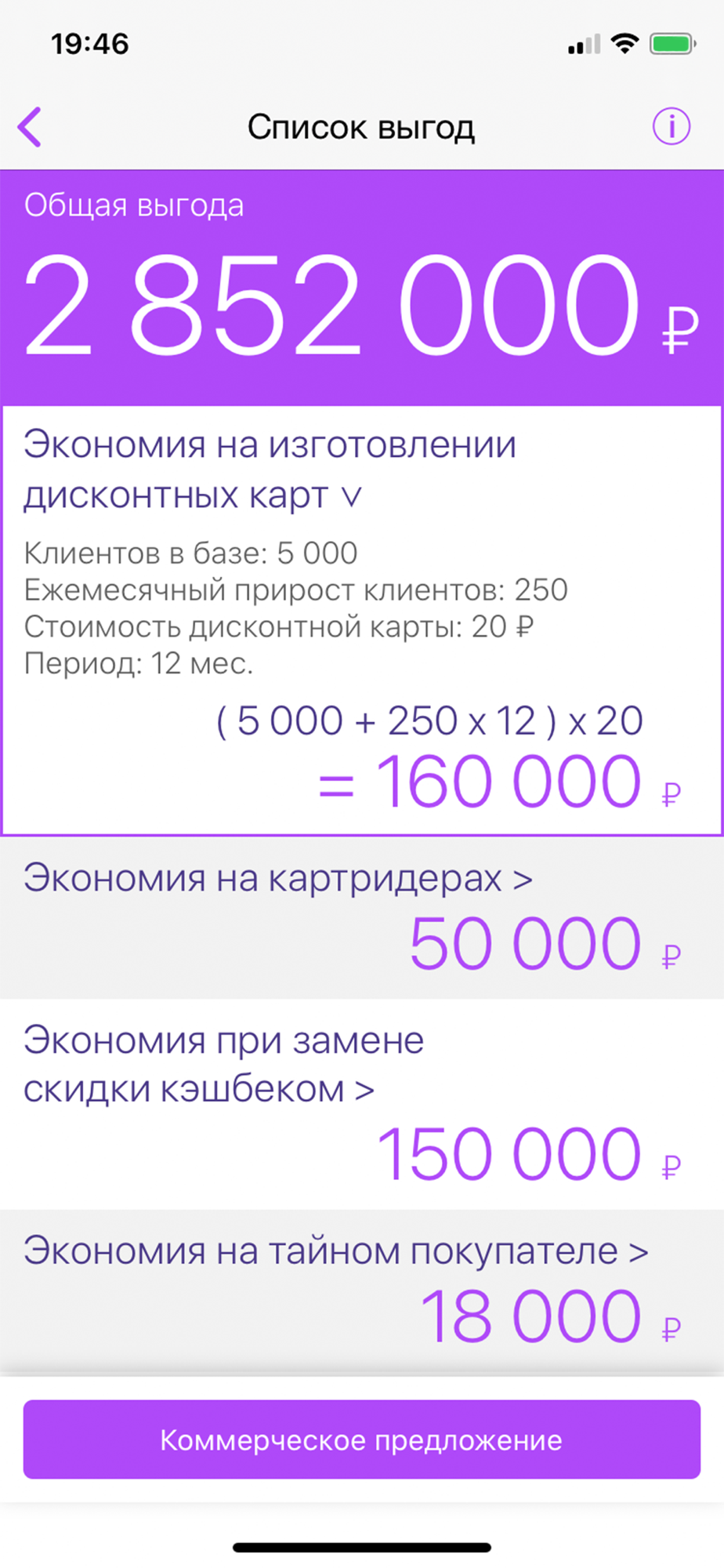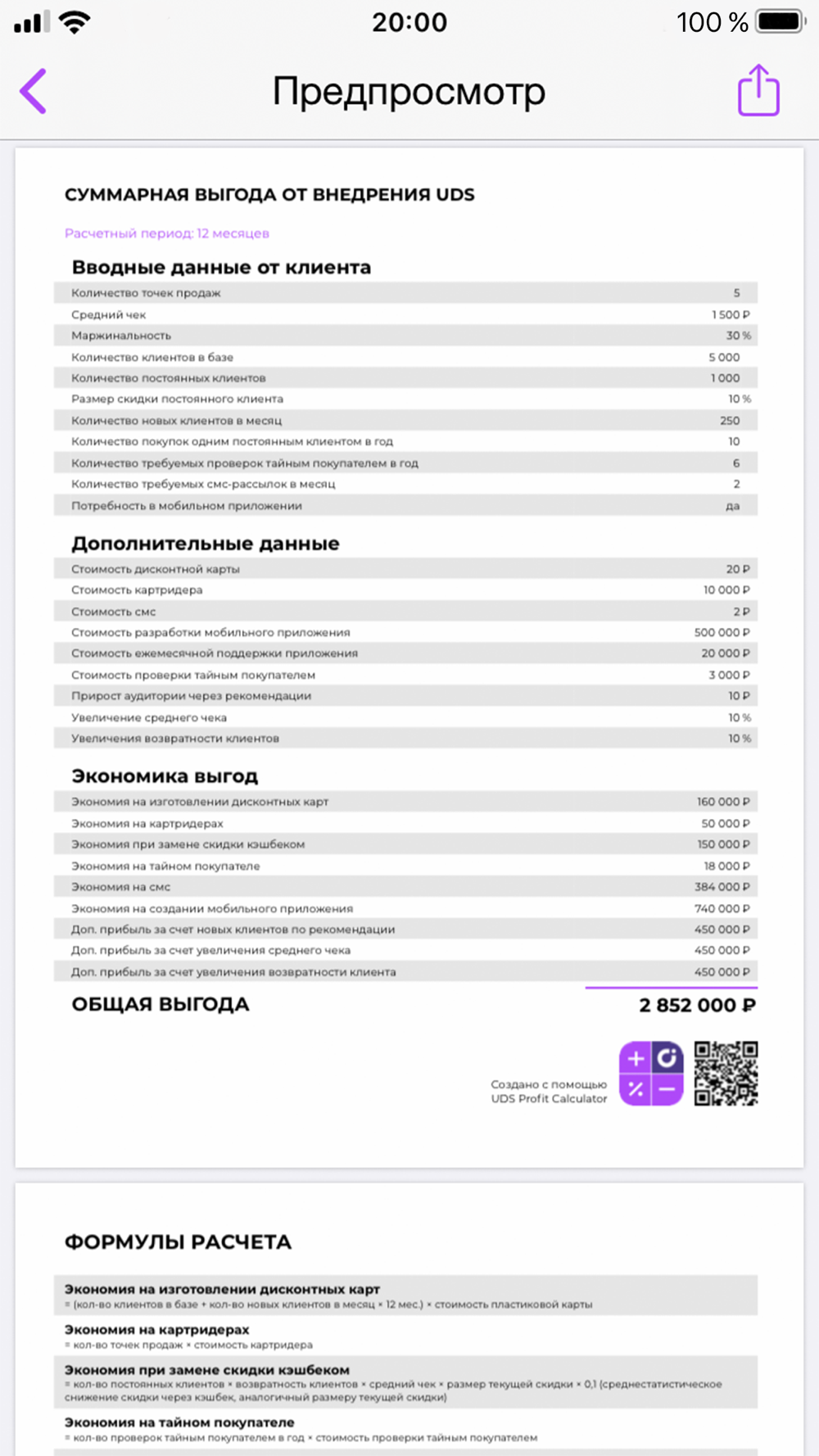 UDS Profit Calculator позволяет эффективно рассчитать общую выгоду от внедрения бонусной программы UDS. В расчете учитывается снижение затрат на традиционные маркетинговые инструменты, получение обратной связи от клиентов и мониторинг качества работы персонала.