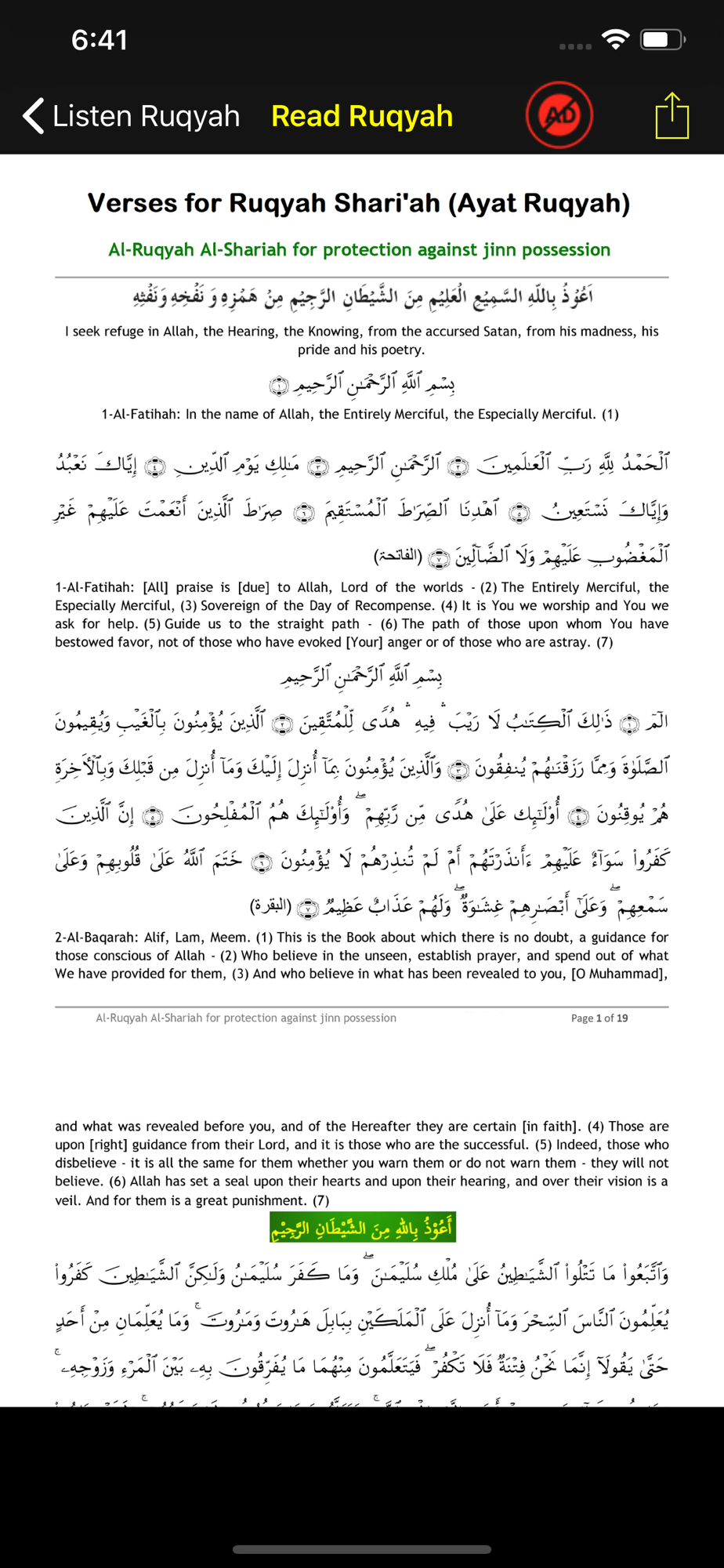 2. Ruqyah shariah reading in English and Arabic also available and works OFFLINE too.