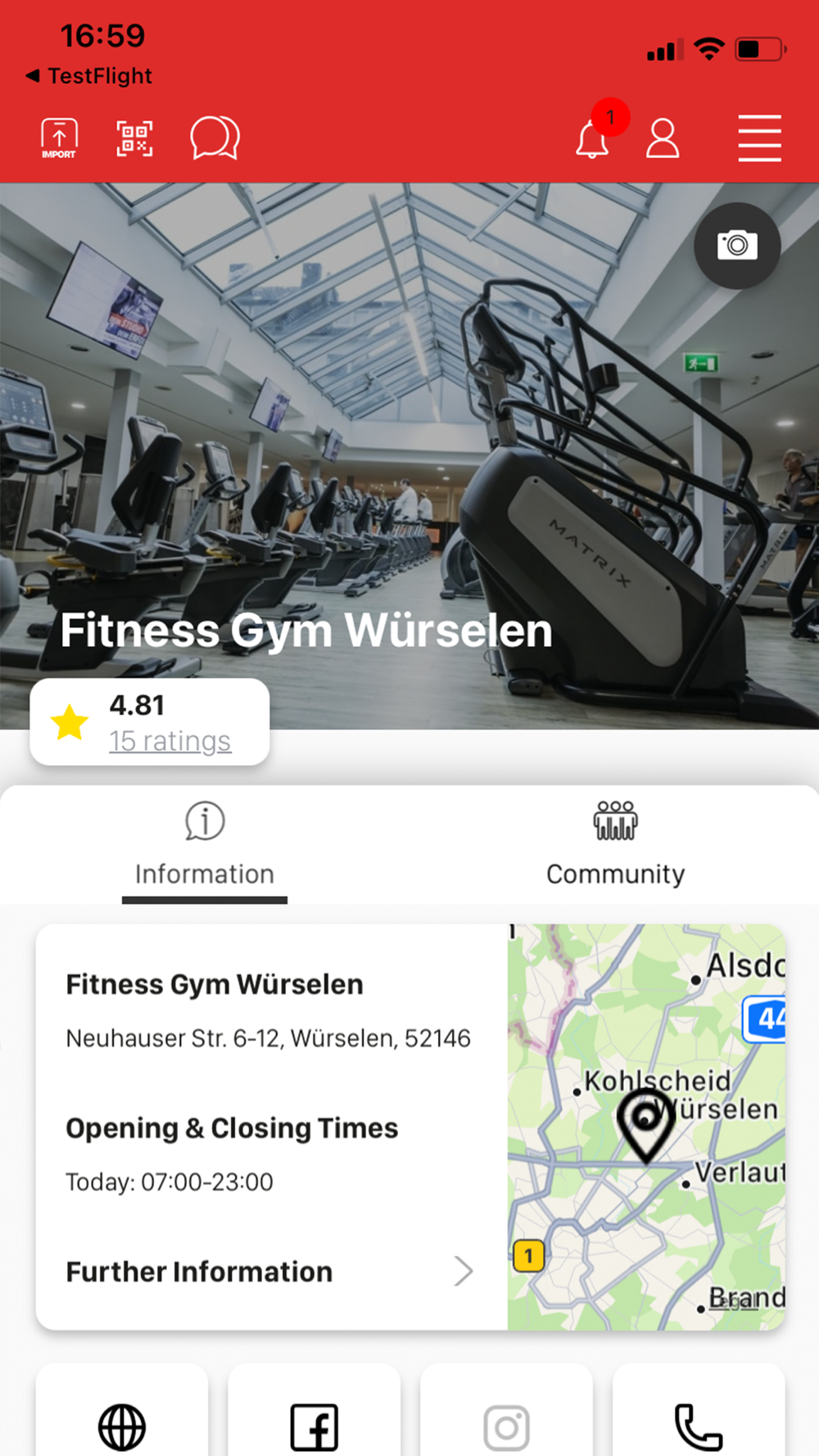 Die App für alle Mitglieder von Fitness Gym Würselen. Ganz egal in welchem Club Du trainierst, das ist Deine App. Hier findest Du alle Infos rund um Dein Studio. Du bist in einer anderen Stadt und suchst nach einem Fitness Gym Würselen? Mit unserer praktischen Übersicht aller Studios ist auch dies kein Problem. Dazu hast Du direkten Zugriff auf den von Deinem Coach vor Ort erstellten Trainingsplan und über die integrierten Push-Nachrichten bist du stets aktuell informiert. Die ganze Welt von Fitness Gym Würselen in einer App.
