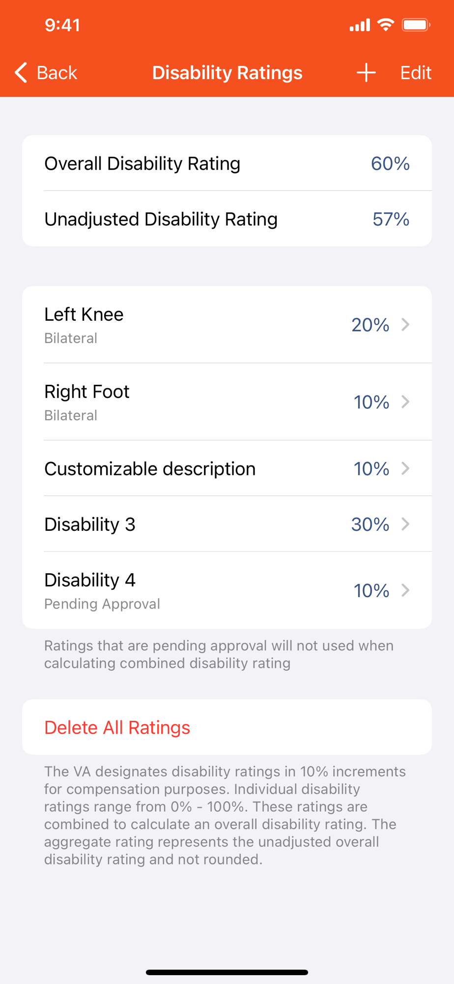 VA Disability Pay is an application intended to assist military personnel from all branches of the military service by informing them of their disability benefits. VA Disability Pay gives assistance by calculating an estimation of Veterans Affairs (VA) disability pay. It also calculates an overall disability rating based on your combined individual disability ratings.