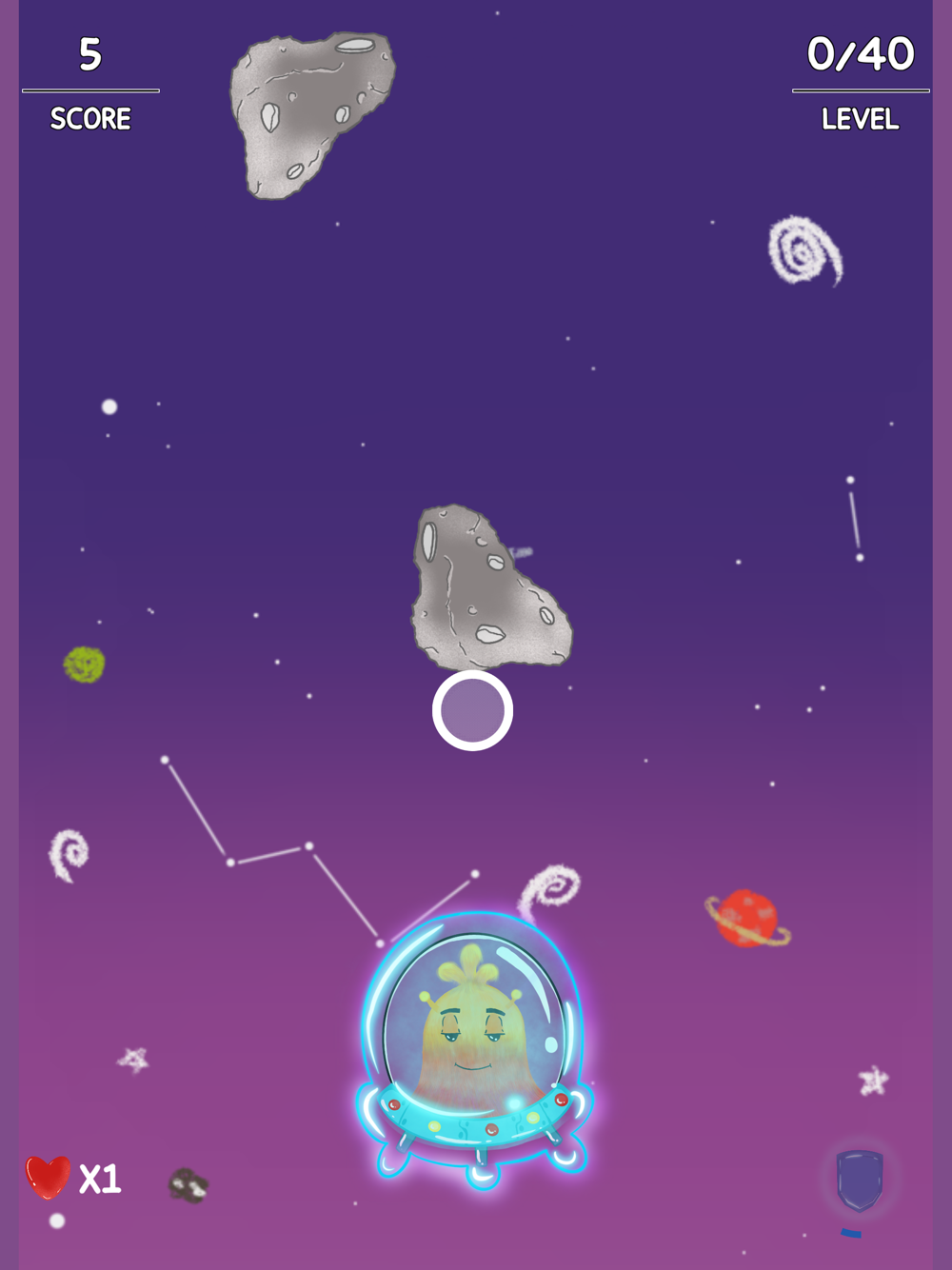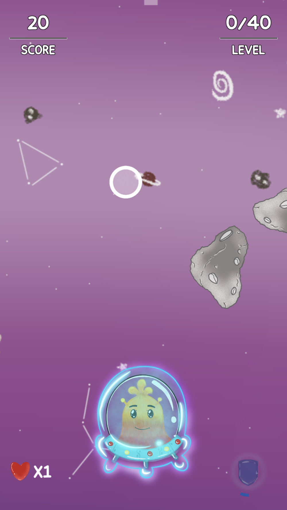 The user has to drag around the protector to push away or deflect the asteroids or spaceships debris away from the alien while flying through space to get back home.