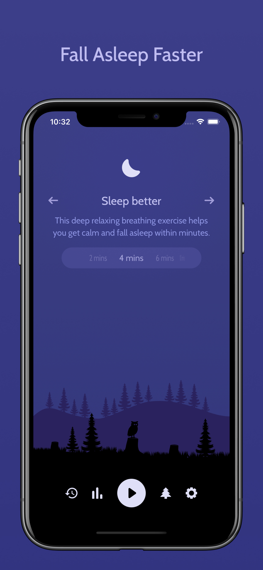 After you begin a session, Unwind breathes with you by animating the background scenes to help you stay mindful and in sync.