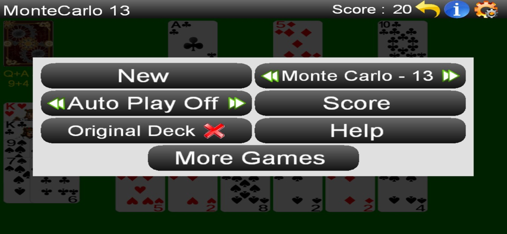 Your goal is to clear Monte Carlo of cards by selecting 2 adjacent cards