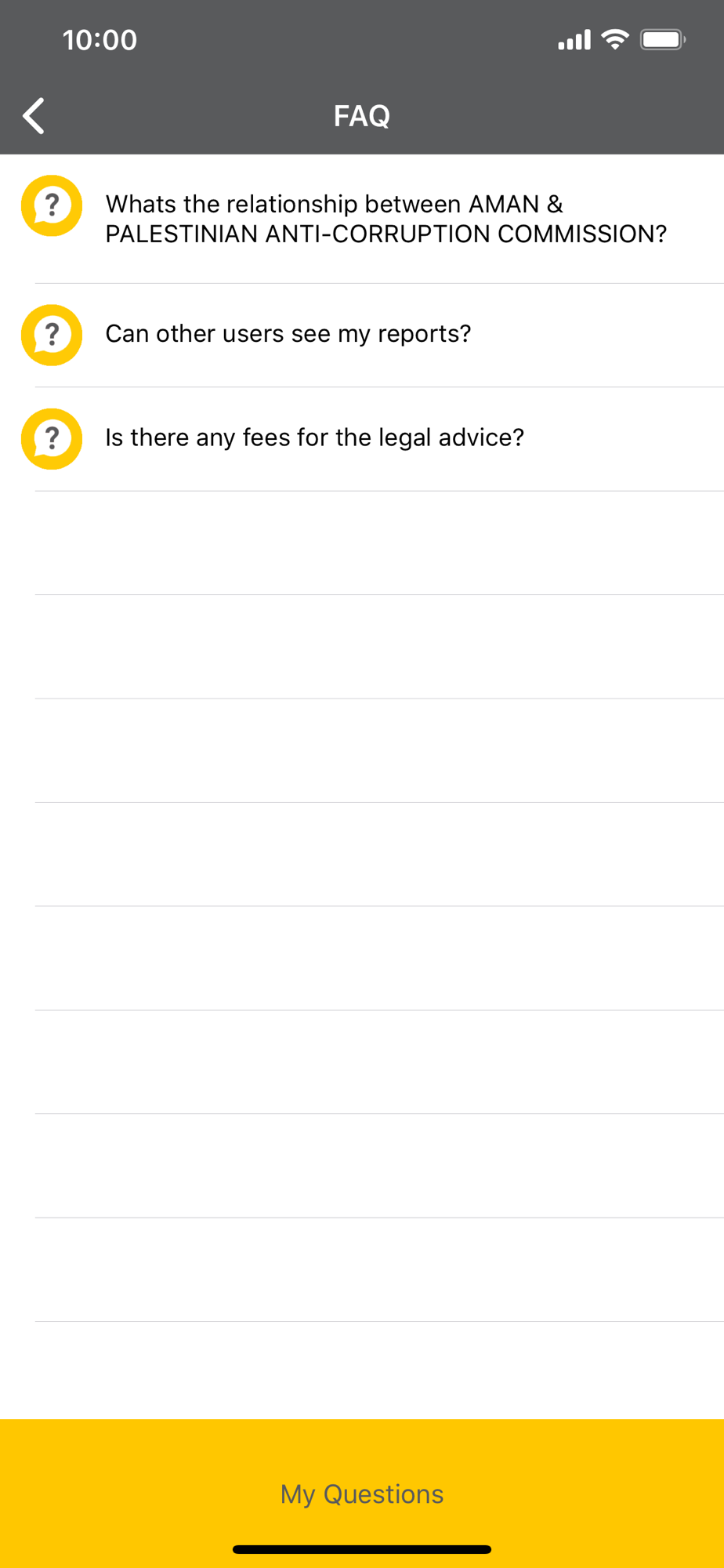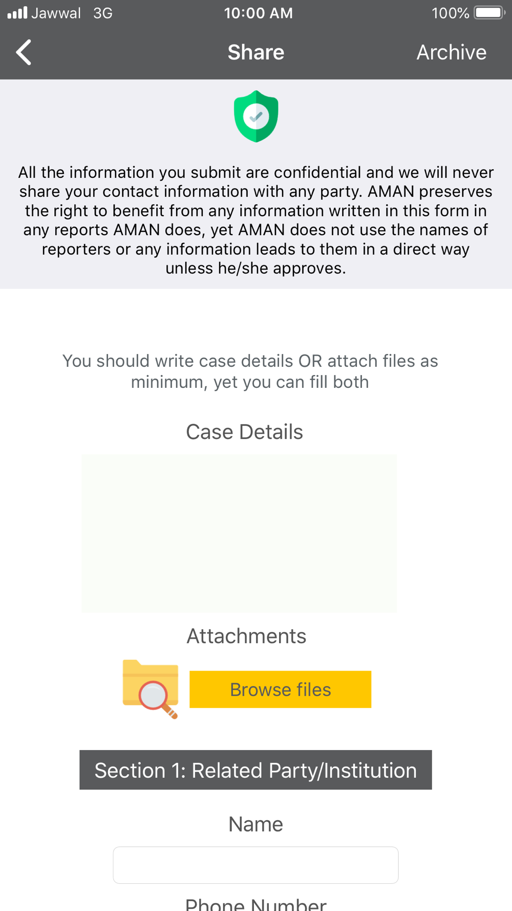 The application of AMAN gives you the ability to share any corruption activities you might come through or experience, with few clicks the case will be at AMAN's hands to follow up and chase. Your data are private unless you choose to be public.