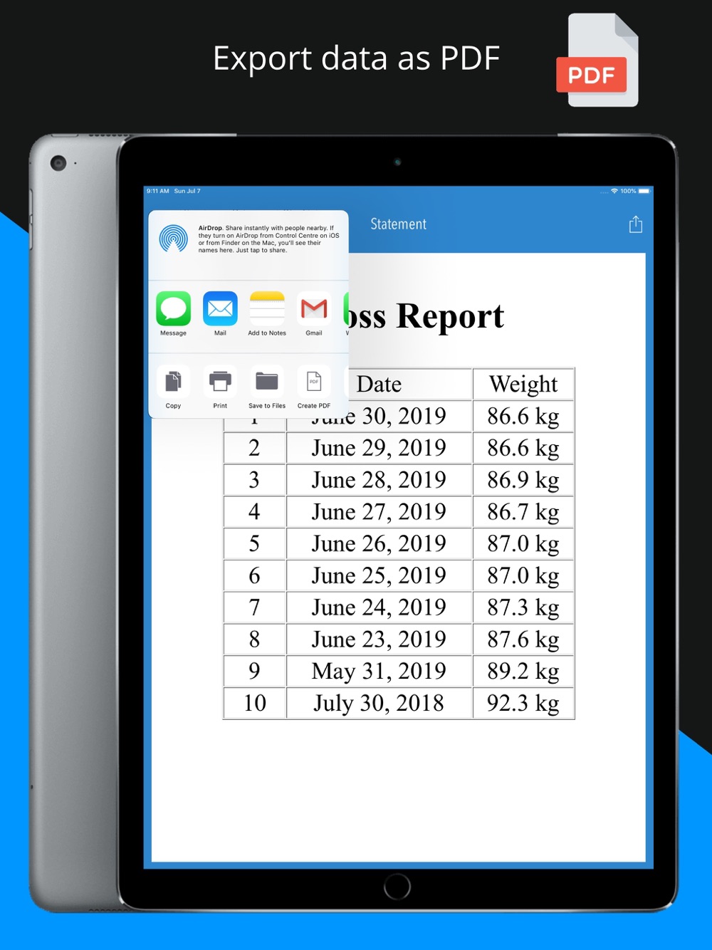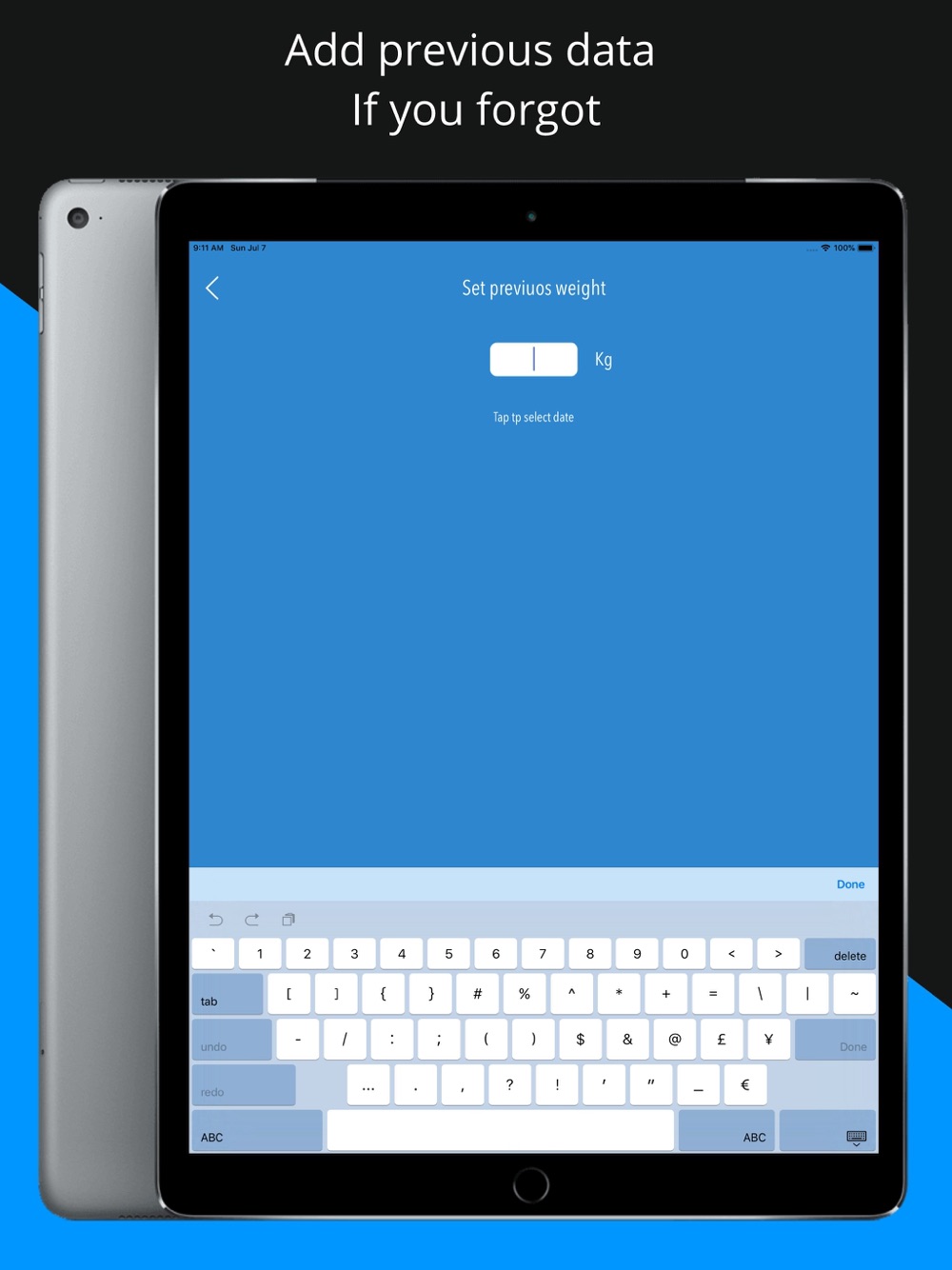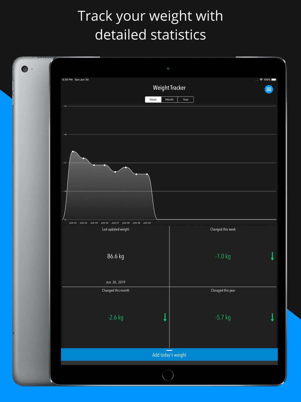 Weight Loss Tracker Tool provides you detailed statistics and analytics information of your body weight. You only need to add your body weight daily.