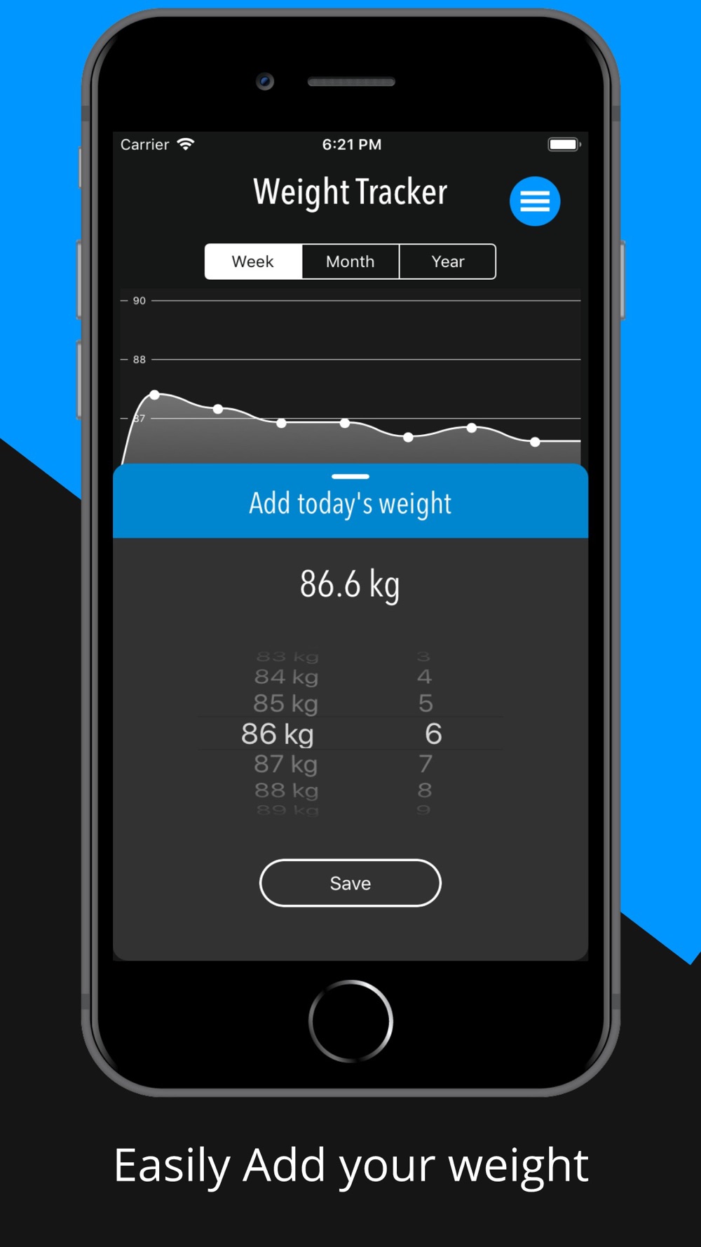Simply add your weight by dragging up the card or tap on the button "Add today's weight".