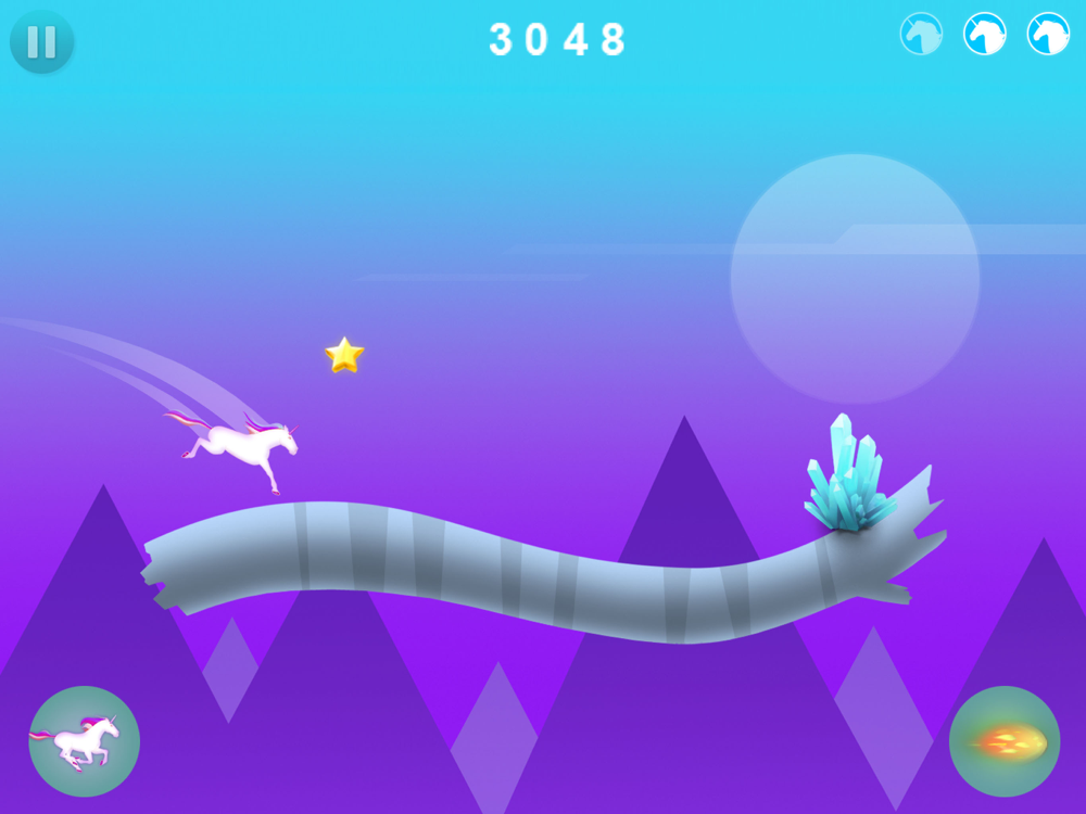 Run and jump Unicorn Horse from platform Wood to another, but watch out for empty parts of the platform during the Unicorn race.