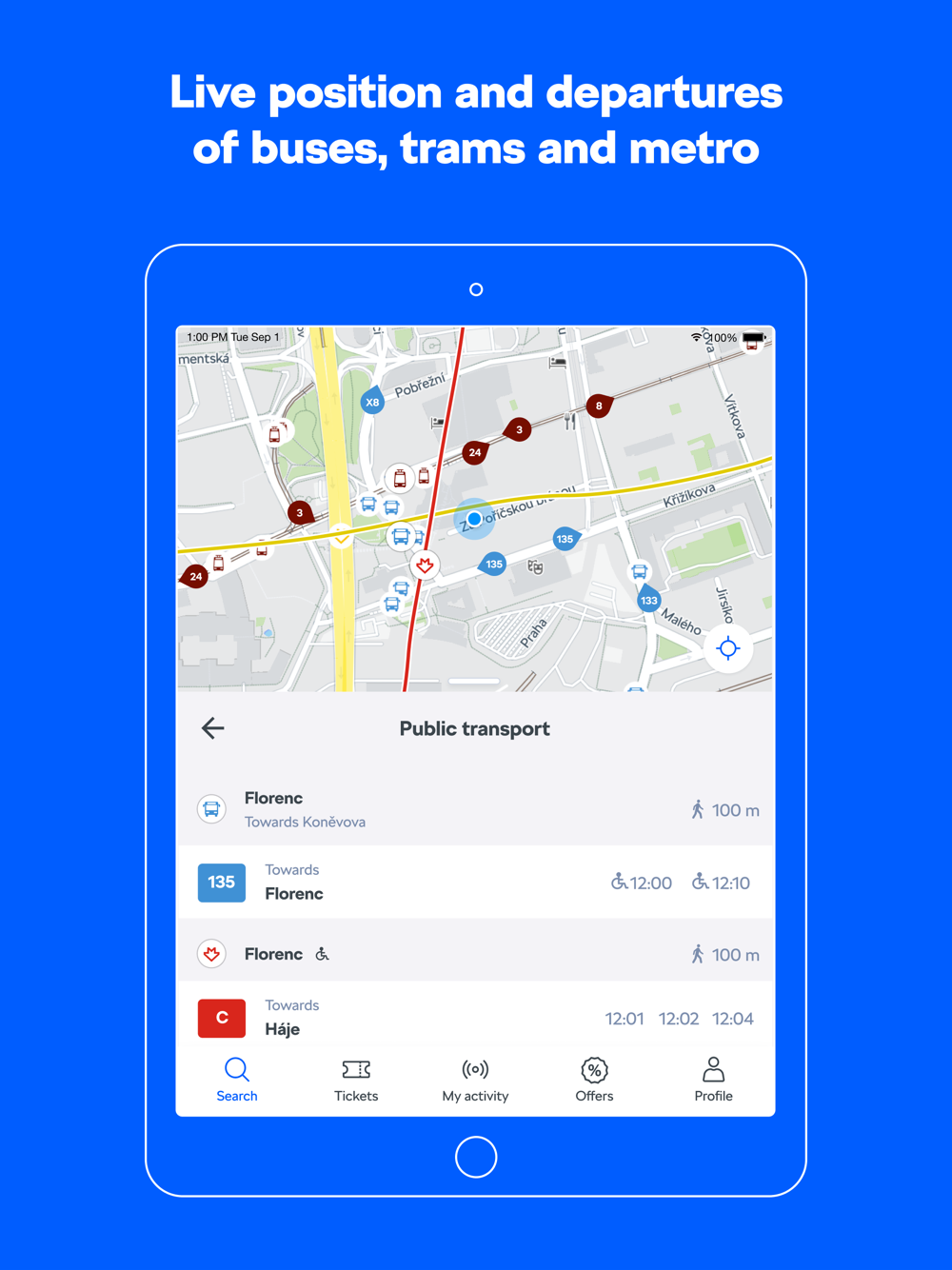 - Live public transport locations
