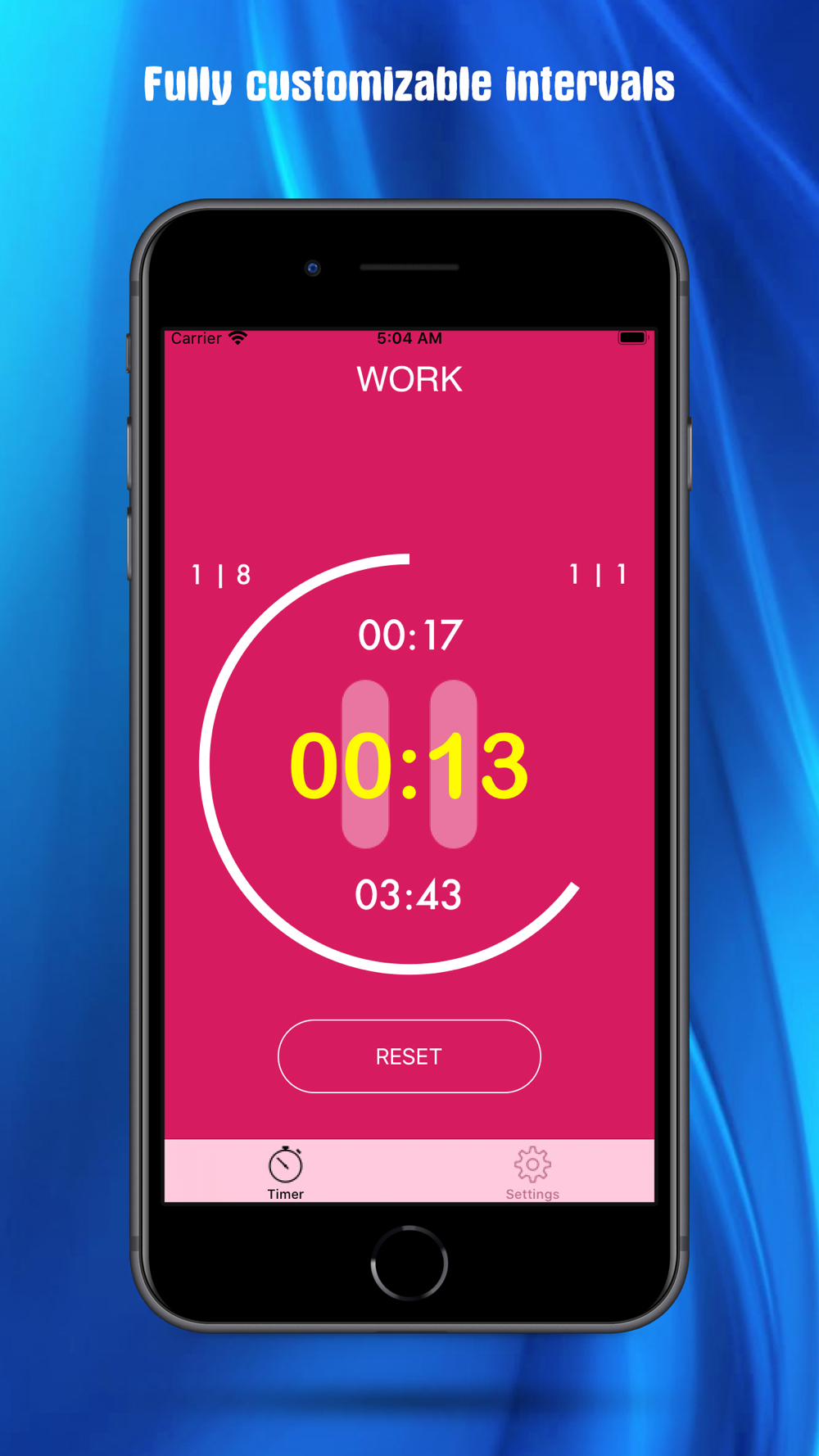 The following features are available in this version of the TABATA timer (HIIT timer)::