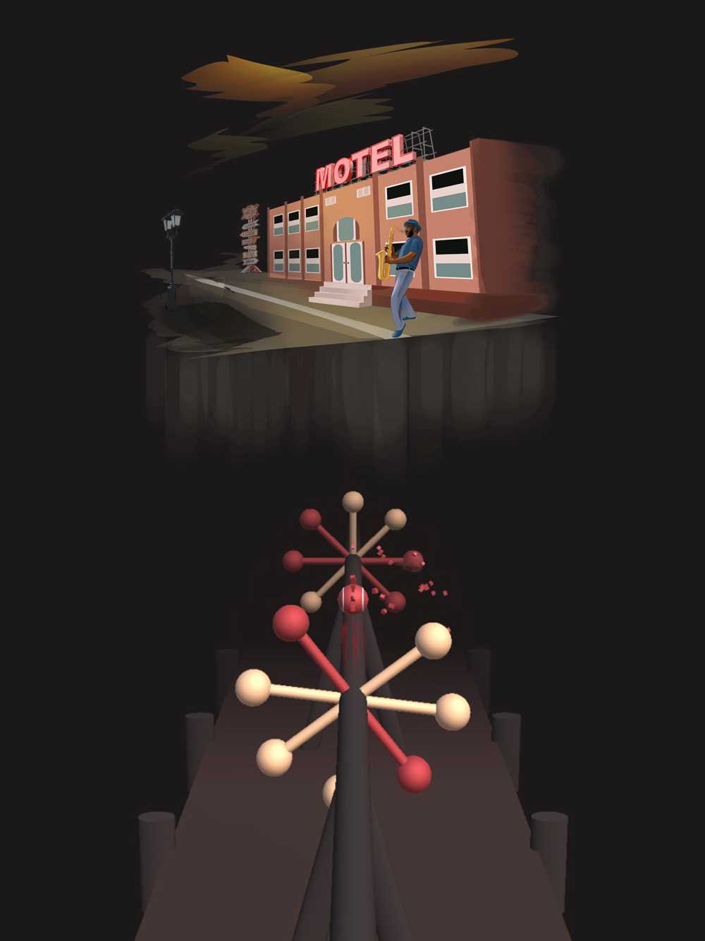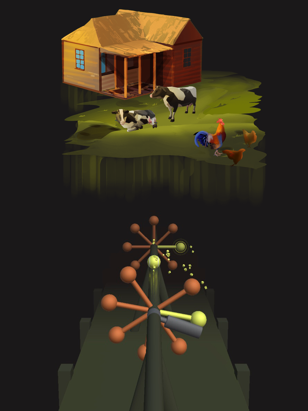 Each level has spinners of different difficulty and color and has a small story that is being created from images you collect. These images are hidden inside the balls of the spinner, break them down to build a small story.