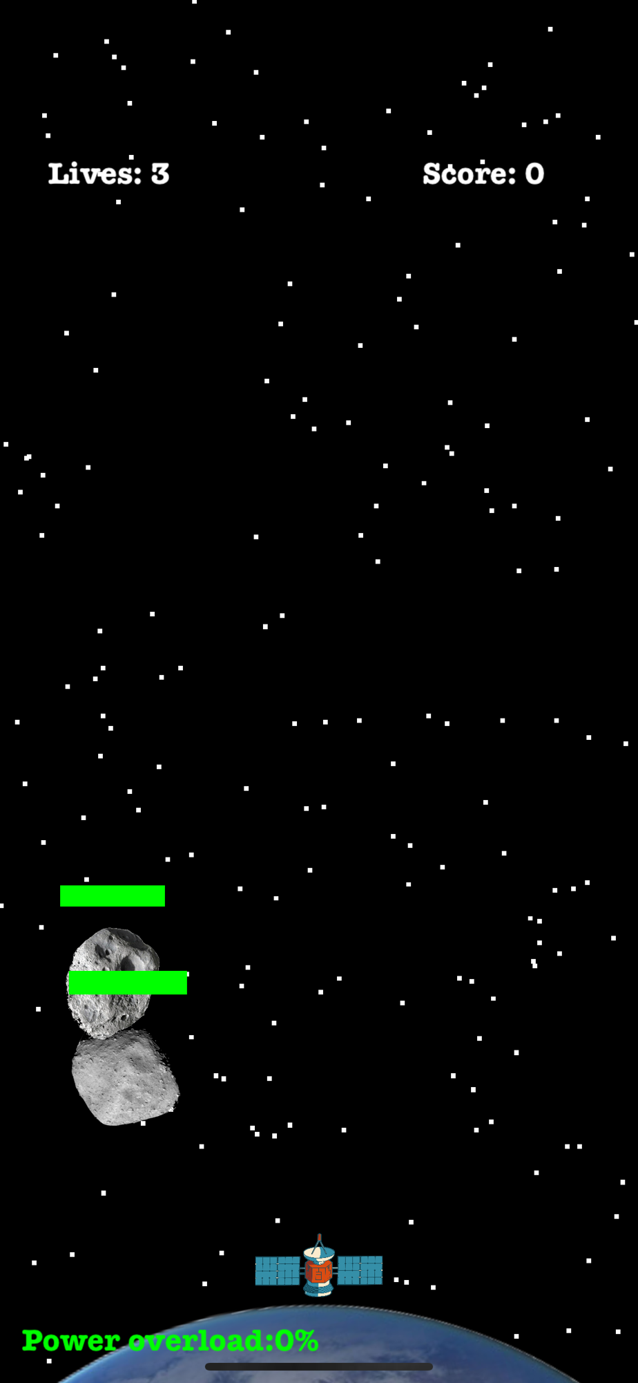 Also be aware that sometimes if you miss asteroid with laser beam, you will get power overload and won't be able to use laser for 2-3 seconds.