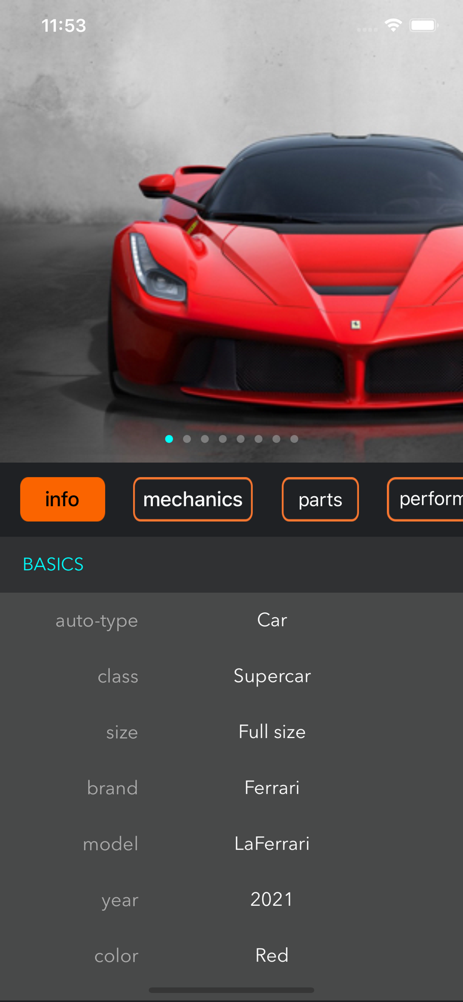 The Auto section is broad and full great of features. It provides a number of key categories such as INTRO, MECHANICS, PARTS, PERFORMANCE and more. Each of these categories go deeper to register data that is uniquely displayed along with exquisite animations. In addition, each new entry registers +20 HD photos for each Auto.