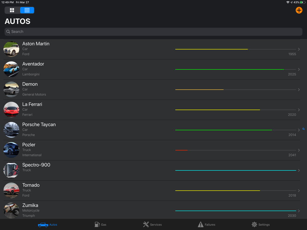 Autos need repair and owner need control of that information. Autochek keeps a registry of dates, location, ratings, mechanic name, workshop and more. It also features a Tile UI that helps identify each entry fast and easy. Each Service is connected to a particular Auto of your choice.