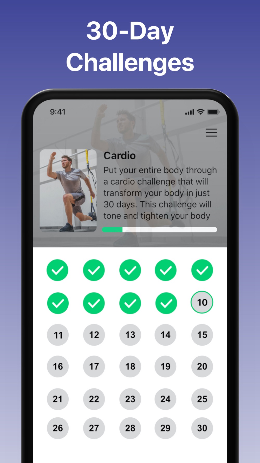 Lose fat, gain muscles, and get in shape with a variety of 30 Day Challenges that target all body. Take one and watch the improvement in just 30 days.
