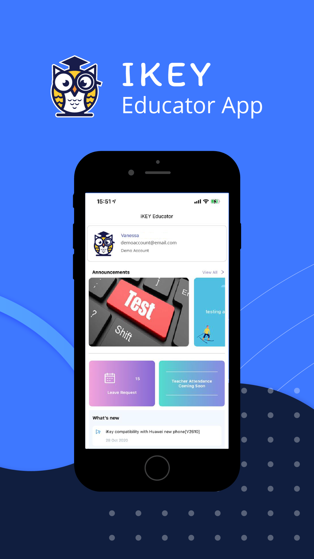Educator- Ikey Educator app is a platform where every teachers can easily and efficiently record students attendance, receive latest announcements from management, key-in students test results and notify parents with just a few clicks!