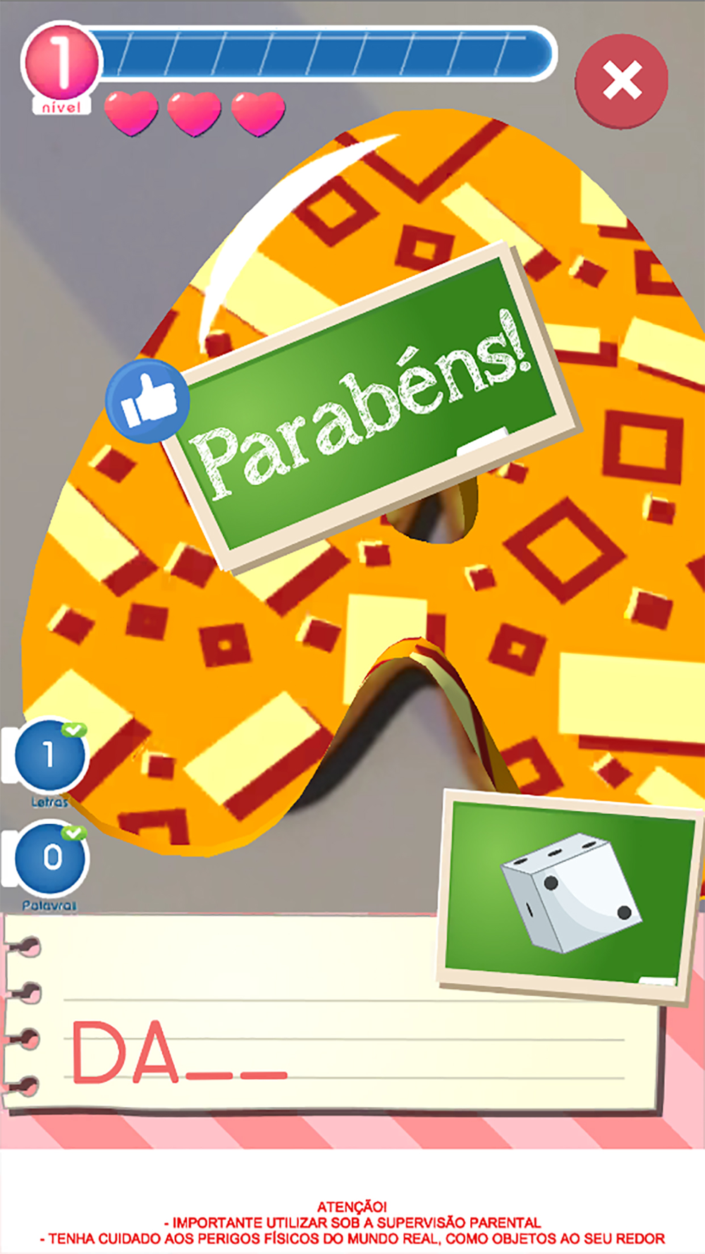 Usando a câmera do seu smartphone, aponte para as letras do seu papel de parede para completar as palavras de acordo com as imagens!