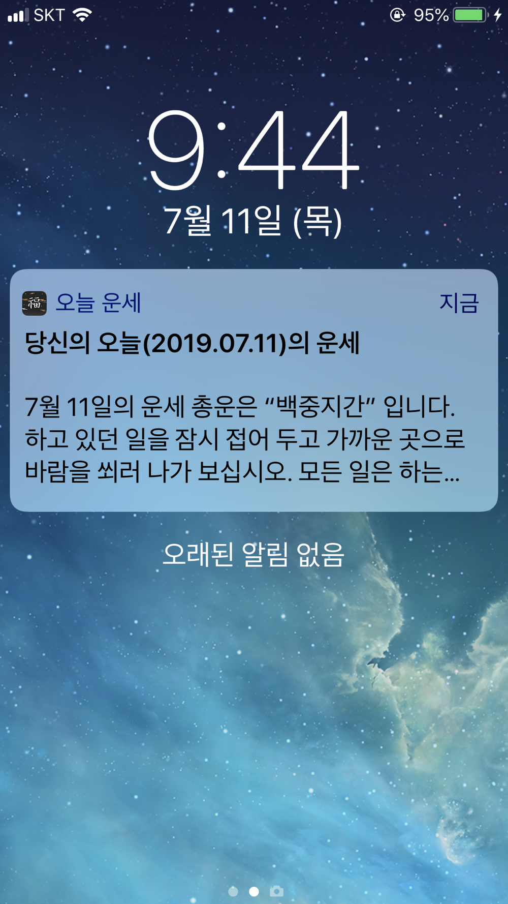 * "설정" 메뉴 > "운세 알림 받기" ON/OFF 기능을 활용하시면.