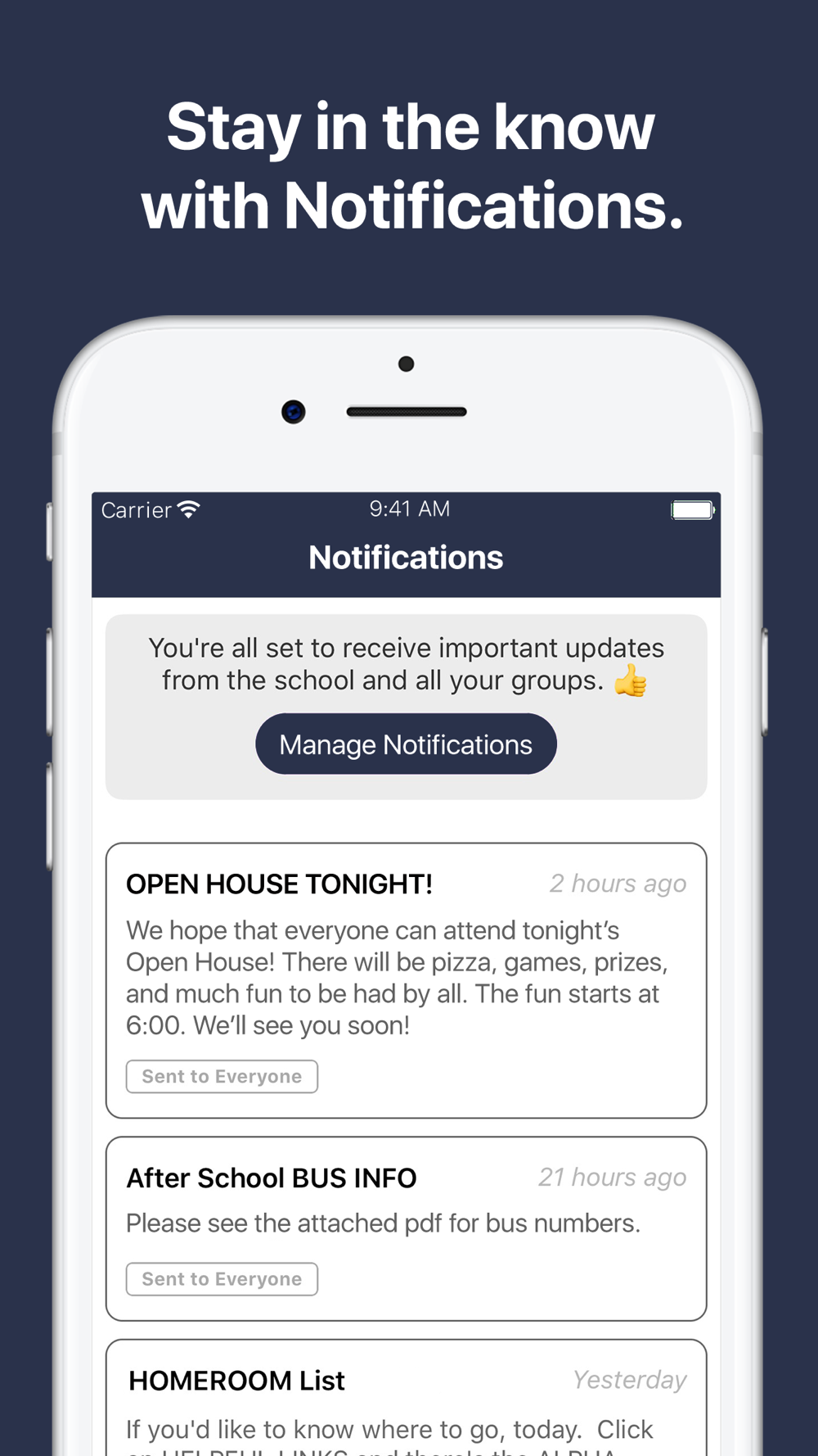 - Get personalized notifications reminding you about events and schedules that are important to you.