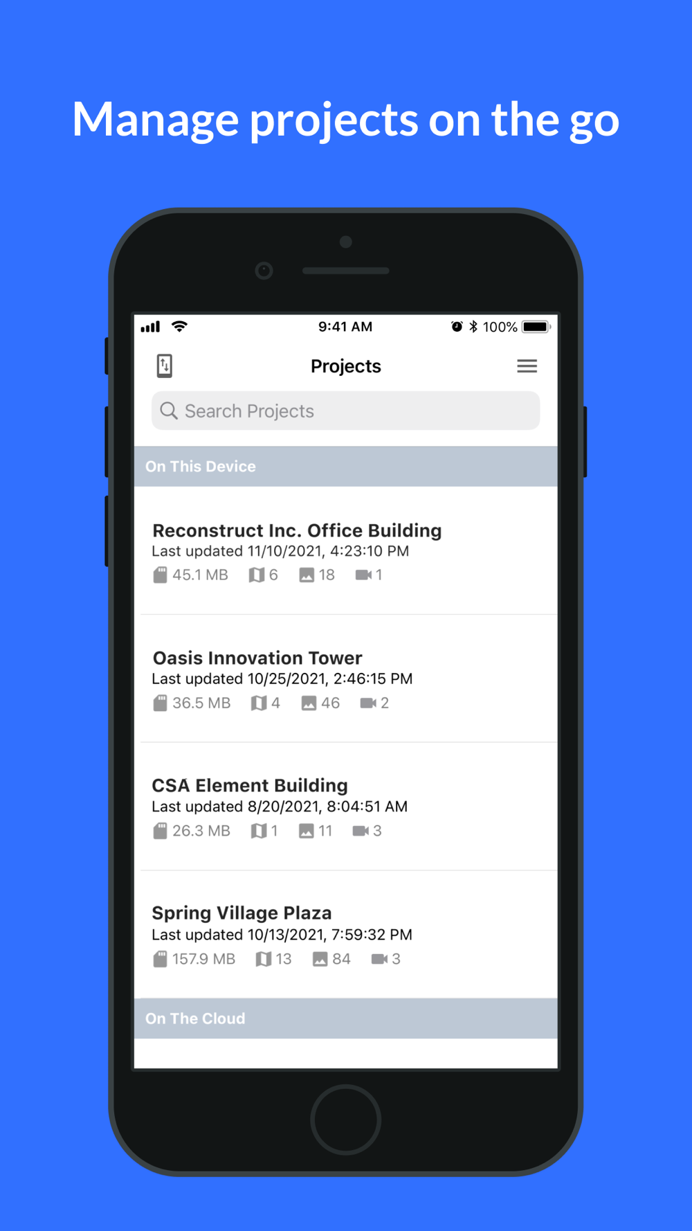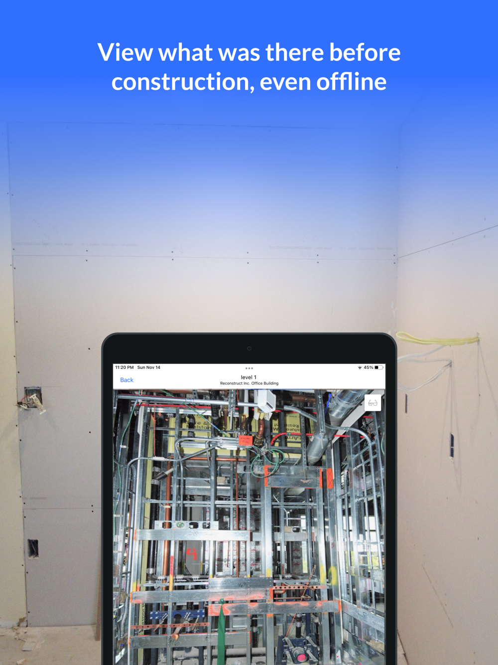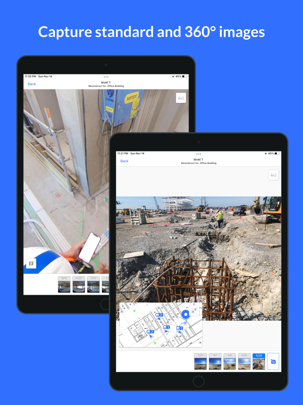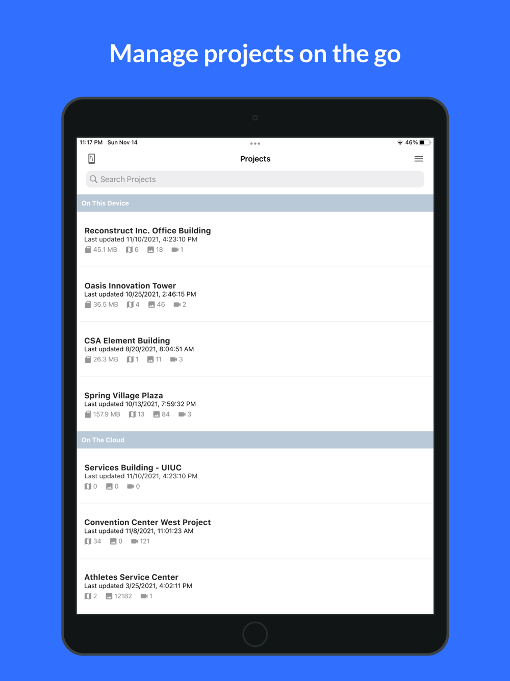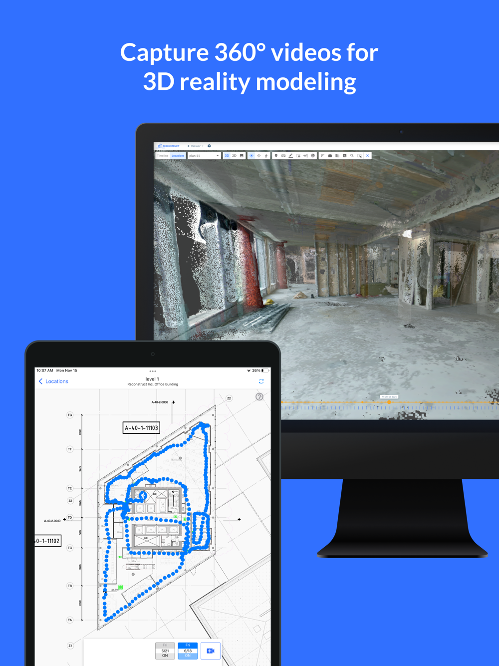 Use Reconstruct Capture app to capture videos, images for your project. Offline mode is supported.