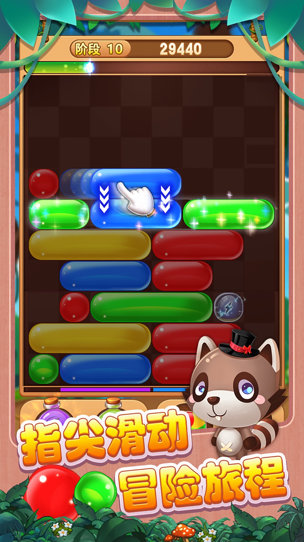 水平移动泡泡来填满和清除整行,颠覆传统消除模式,给你从未有过的游戏体验!