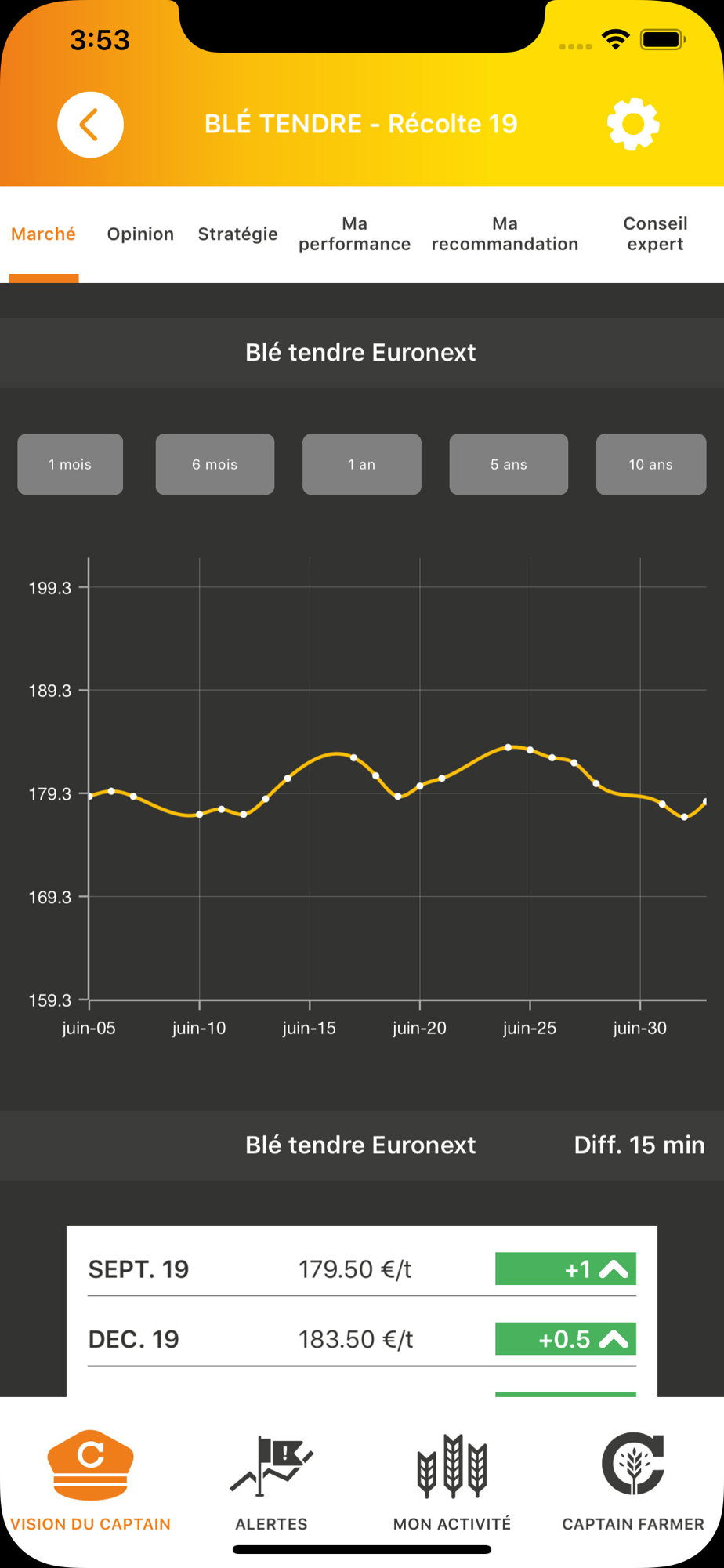Captain Farmer est une application mobile conçue pour simplifier les décisions de vente des producteurs céréaliers. Captain Farmer est un outil d’aide à la décision qui combine l’expertise de marché et données économiques de l’exploitation, pour fournir un conseil totalement personnalisé pour vendre au bon moment.