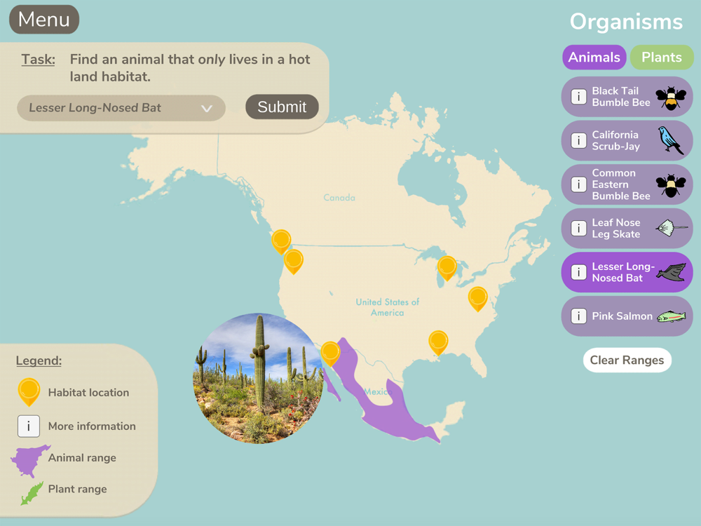 This simulation asks users to answer questions about plant and animal habitats and habitat ranges.
