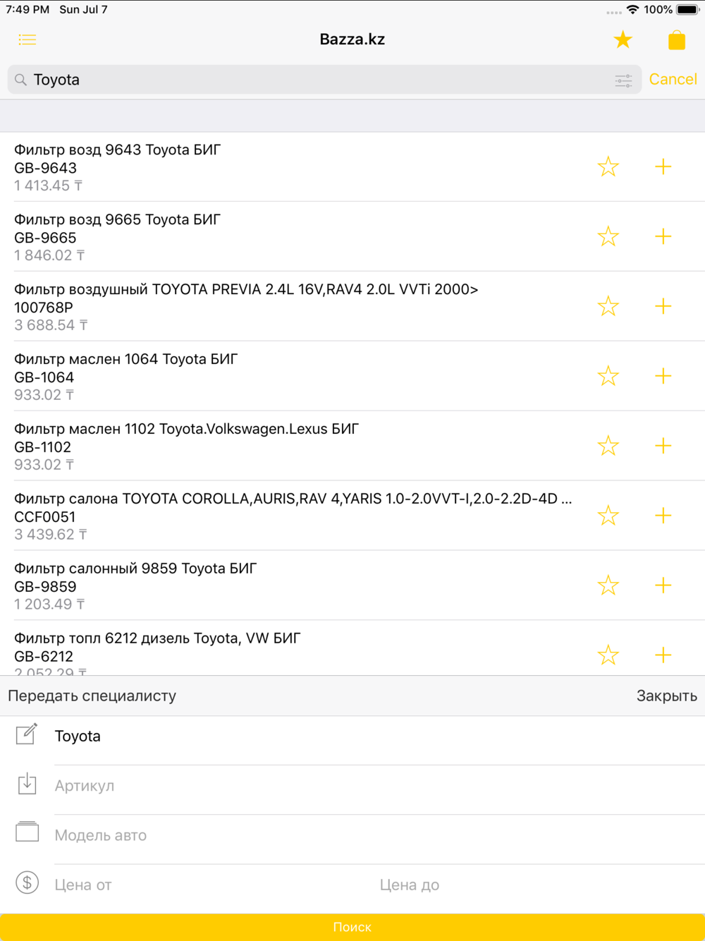 Поиск и покупка авто запчастей. Наши менеджеры всегда готовы оказать помощь в подборе и заказе необходимой Вам запчасти. Одной из ключевых особенностей Bazza является возможность пошагового отслеживания движения Вашего заказа. Ни одна деталь не пропадет из виду!