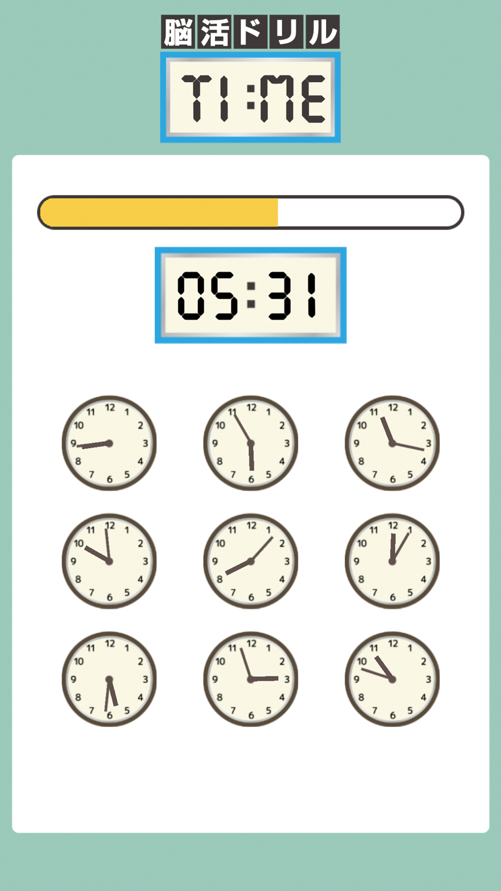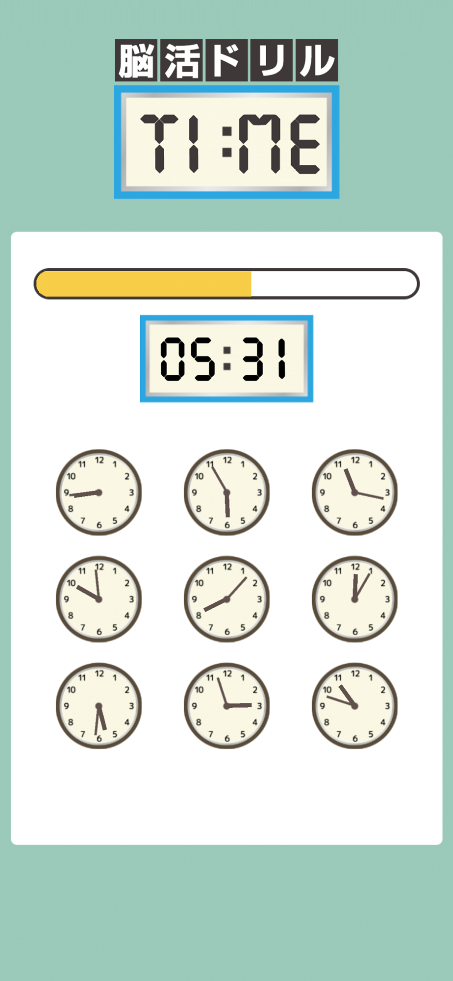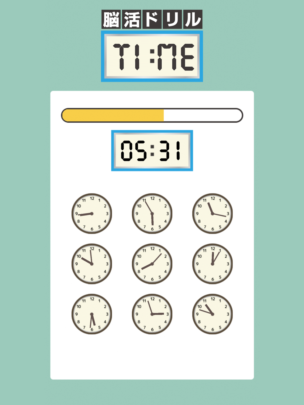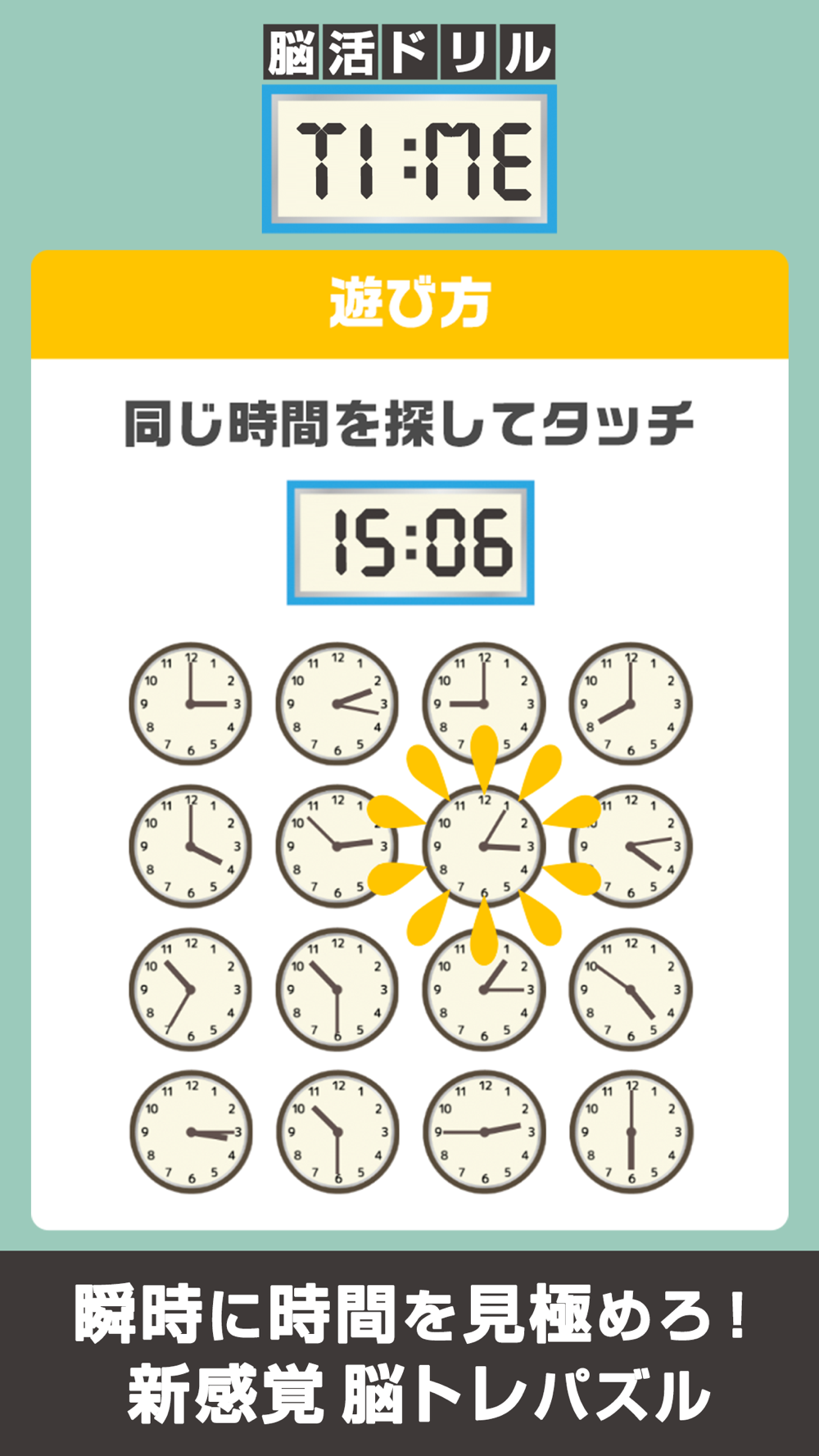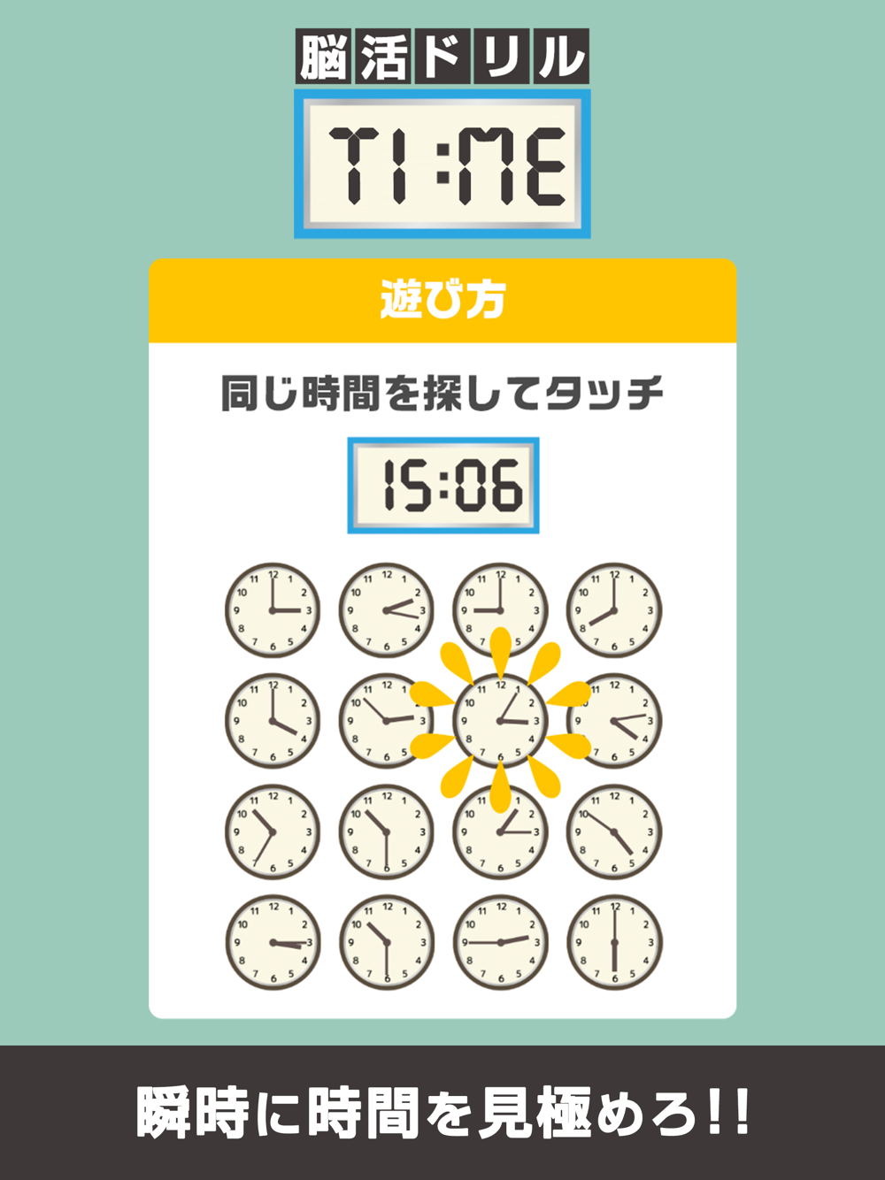 デジタル時計と同じ時間のアナログ時計を見つけてタップするだけ!