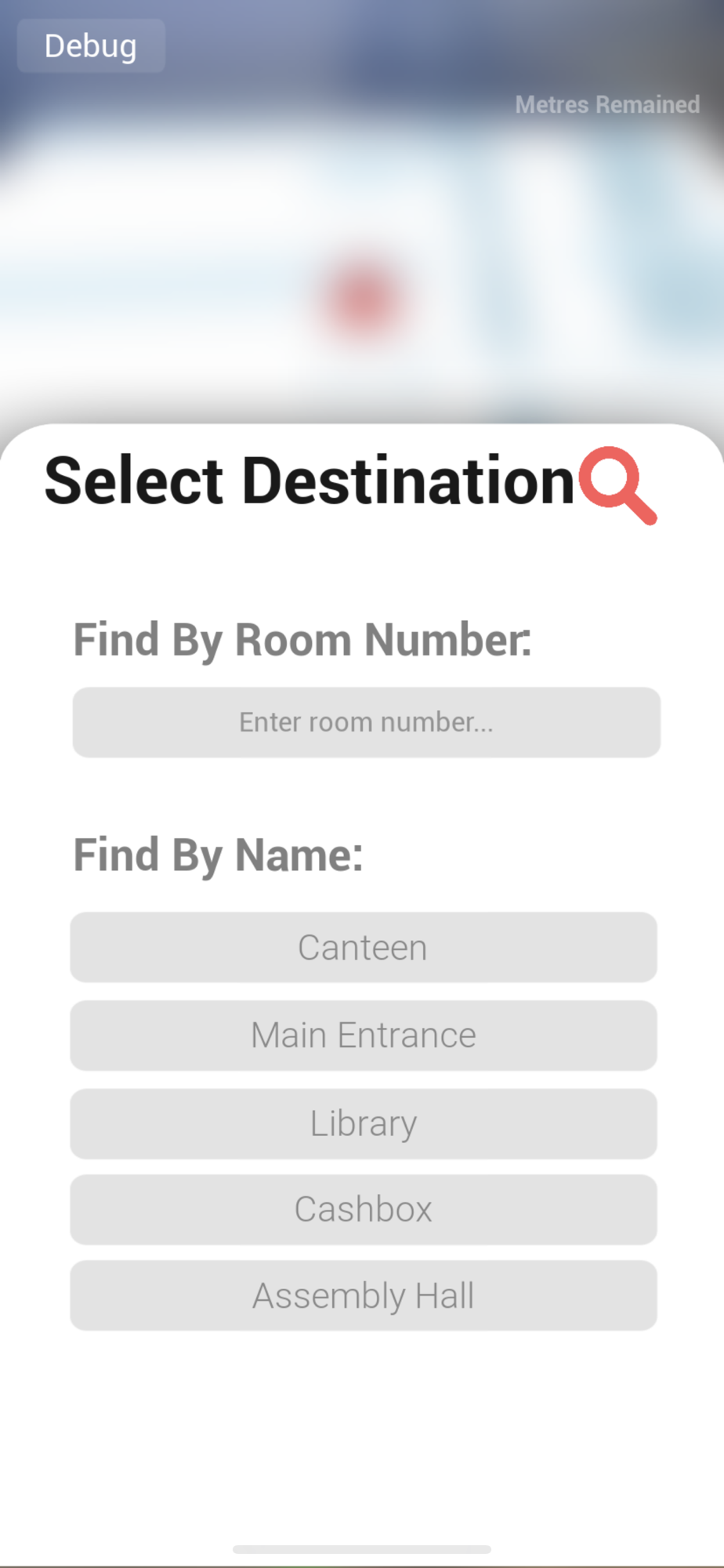 - Intuitive UI that shows user's destination, remained distance, and has a list of quick buttons for predefined destinations.