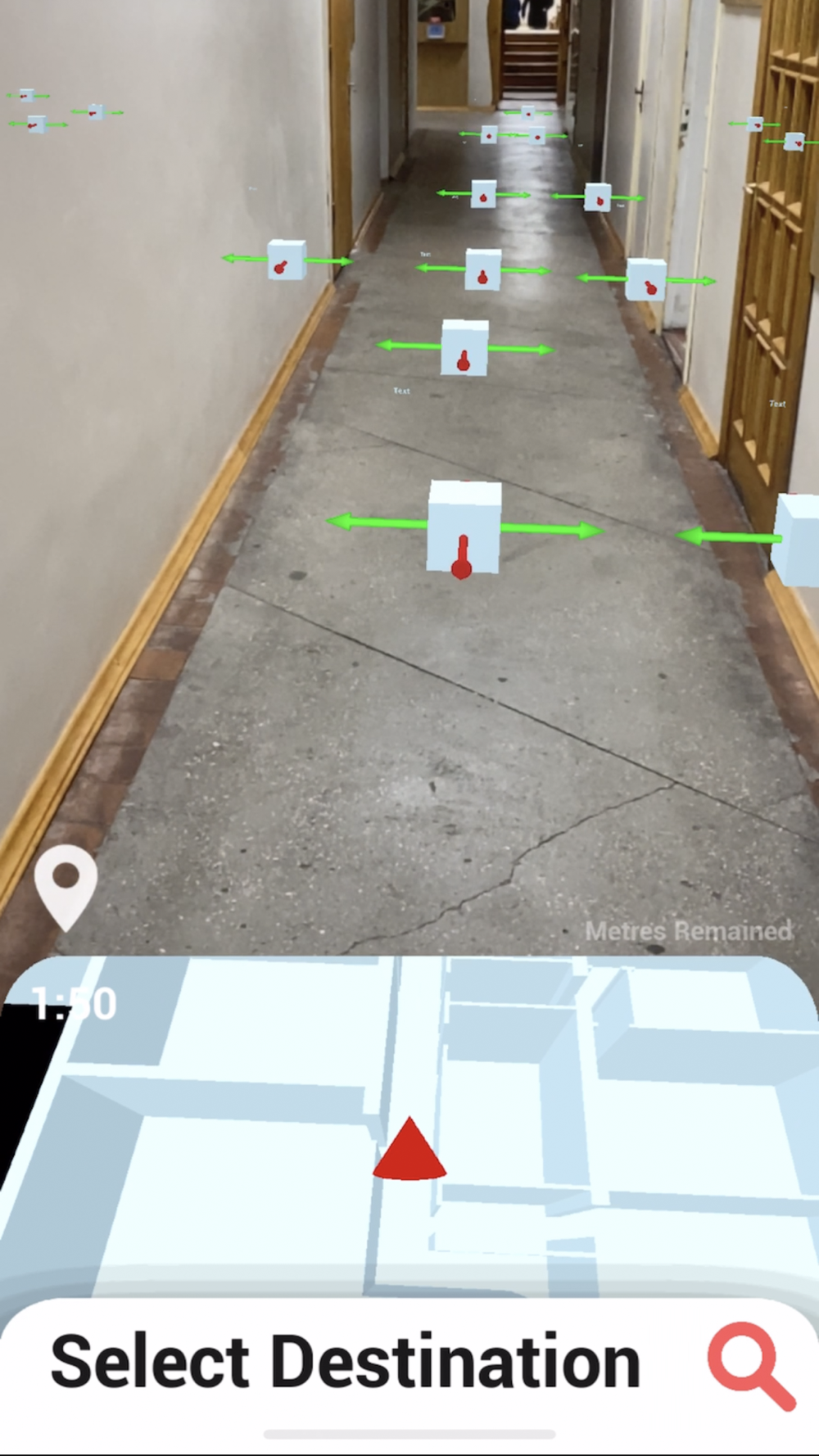 3. After the initial position is set, the app starts the AR session. Now the app and its minimap will react to user's movements seamlessly using visual-inertial odometry provided by ARKit.