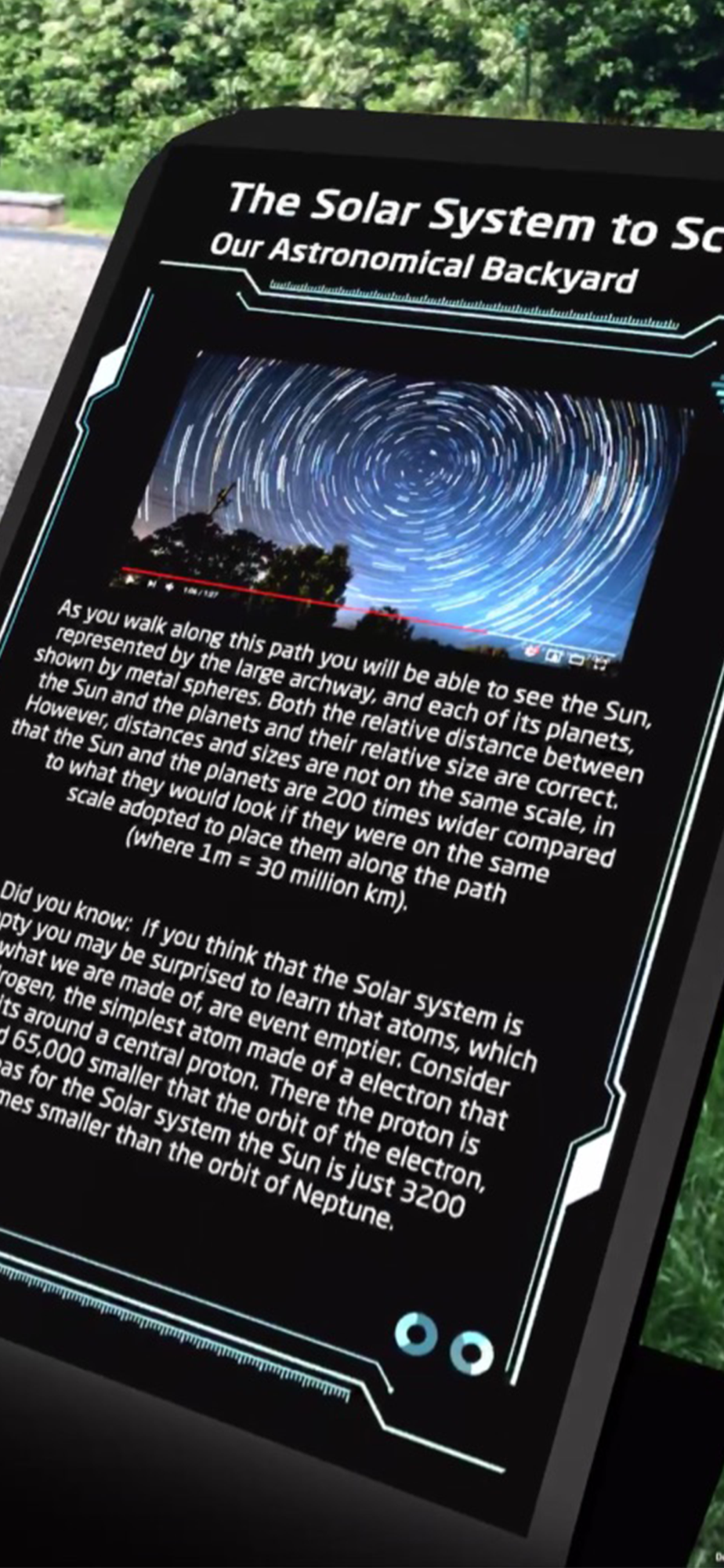 The Armagh Planetarium AR app makes use of Apple's advanced ARKit technologies, providing users with a marker based (or image based) Augmented experience. To use the app, simply locate one of the trigger images clearly identified within the app, and point your camera at the image to begin your experience. Follow the onscreen directions for ease of use.
