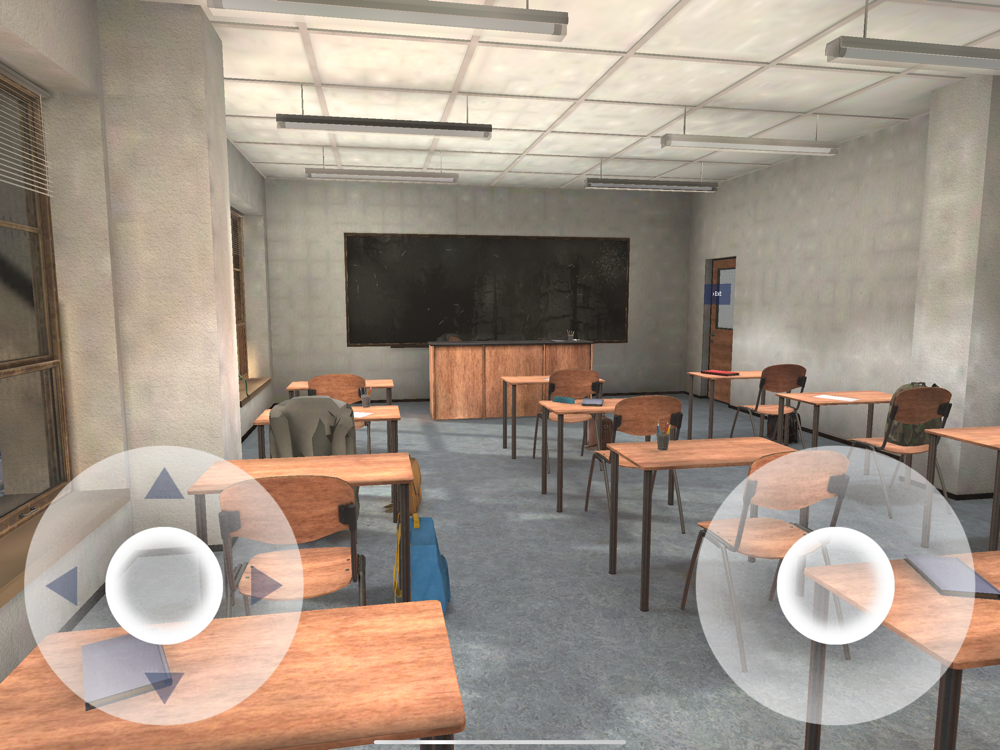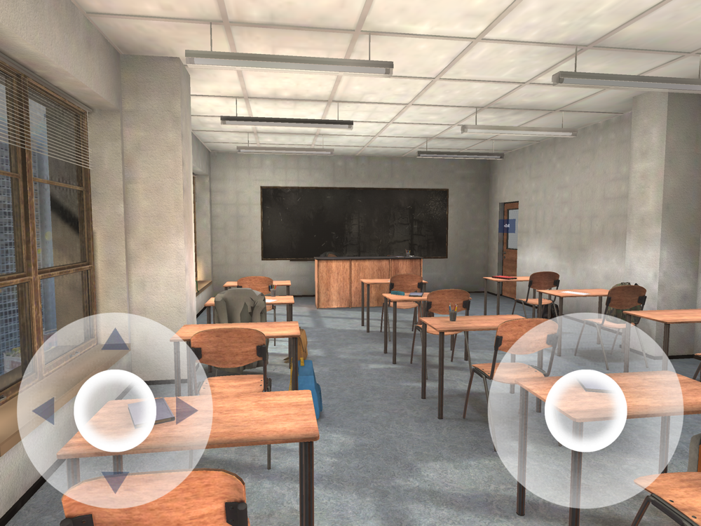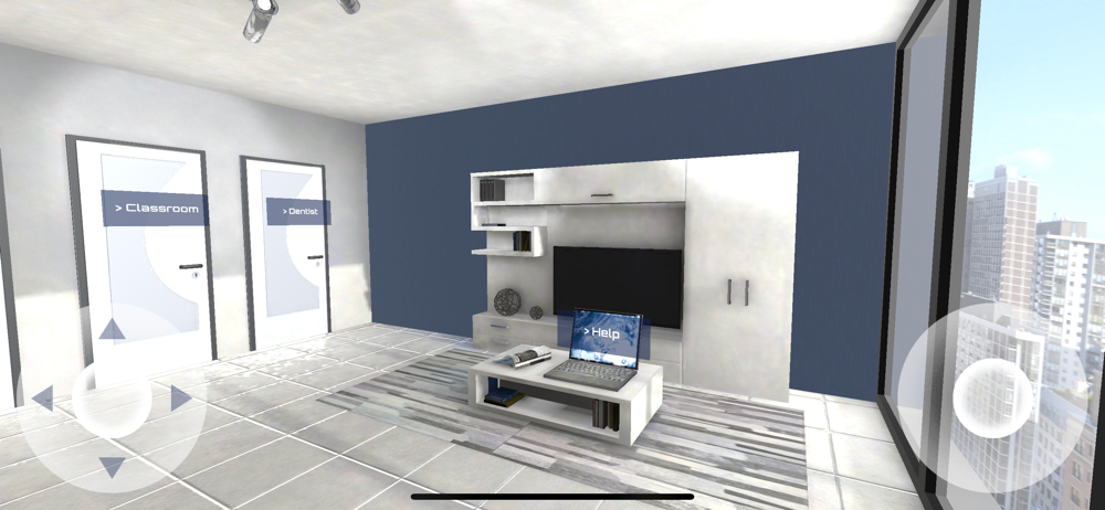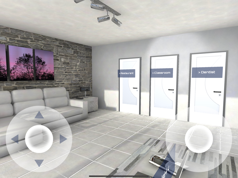 There are three doors lined up. Each door leads to a different room. You can enter each door by tap at the door. There are various items in each room.