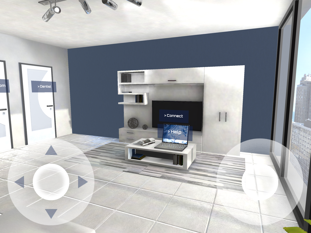 To leave the room, tap the door.